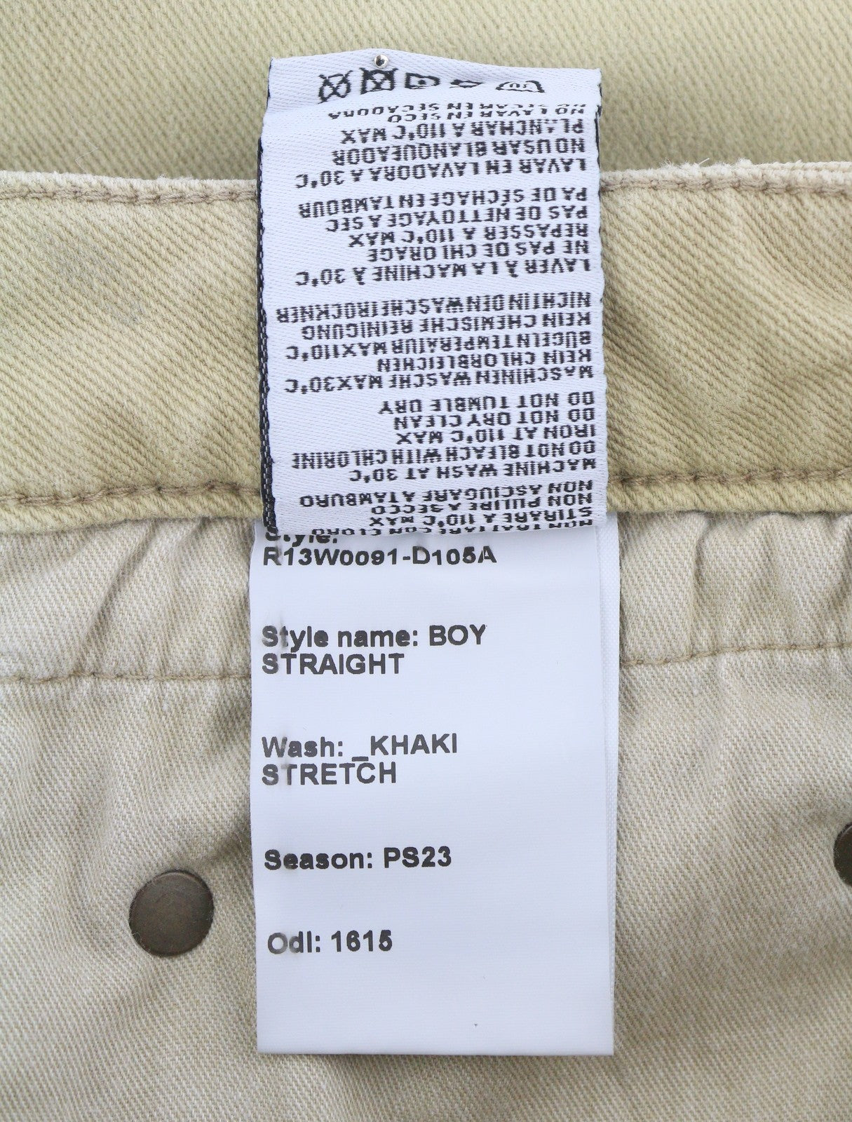 R13 Boy Straight Women Jeans 27 Khaki Stretch Washed Cropped Ankle Zip RRP€699