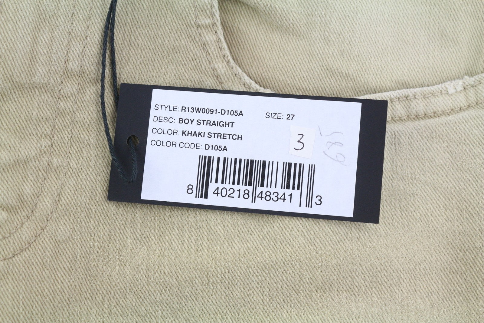 R13 Boy Straight Women Jeans 27 Khaki Stretchy Washed Cropped Ankled RRP€699