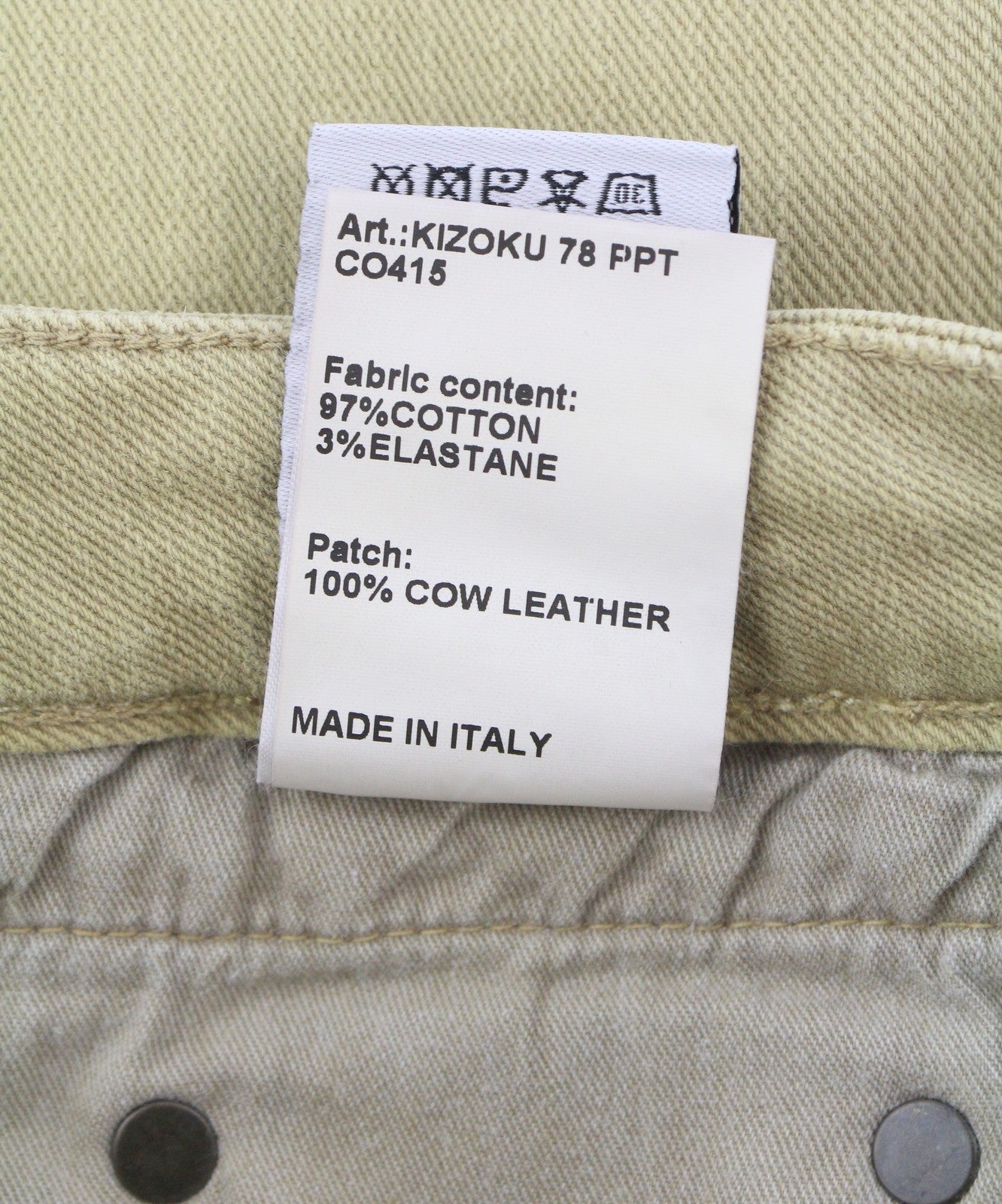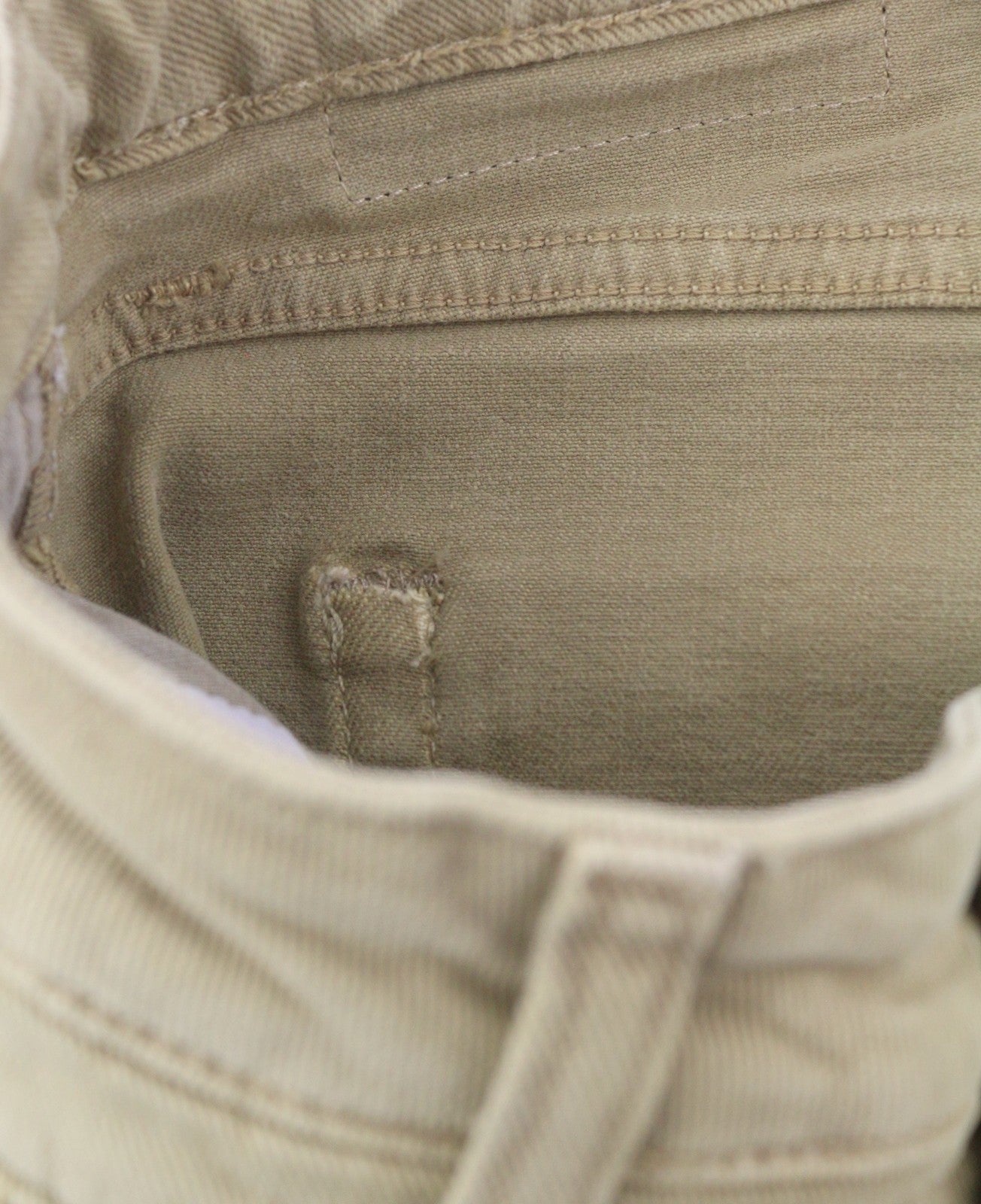 Small holes on the back pockets corners. Small stain and pulled out thread on the front. The material is slightly waved (elastane is stretch out) in a few places. Please see added photos.