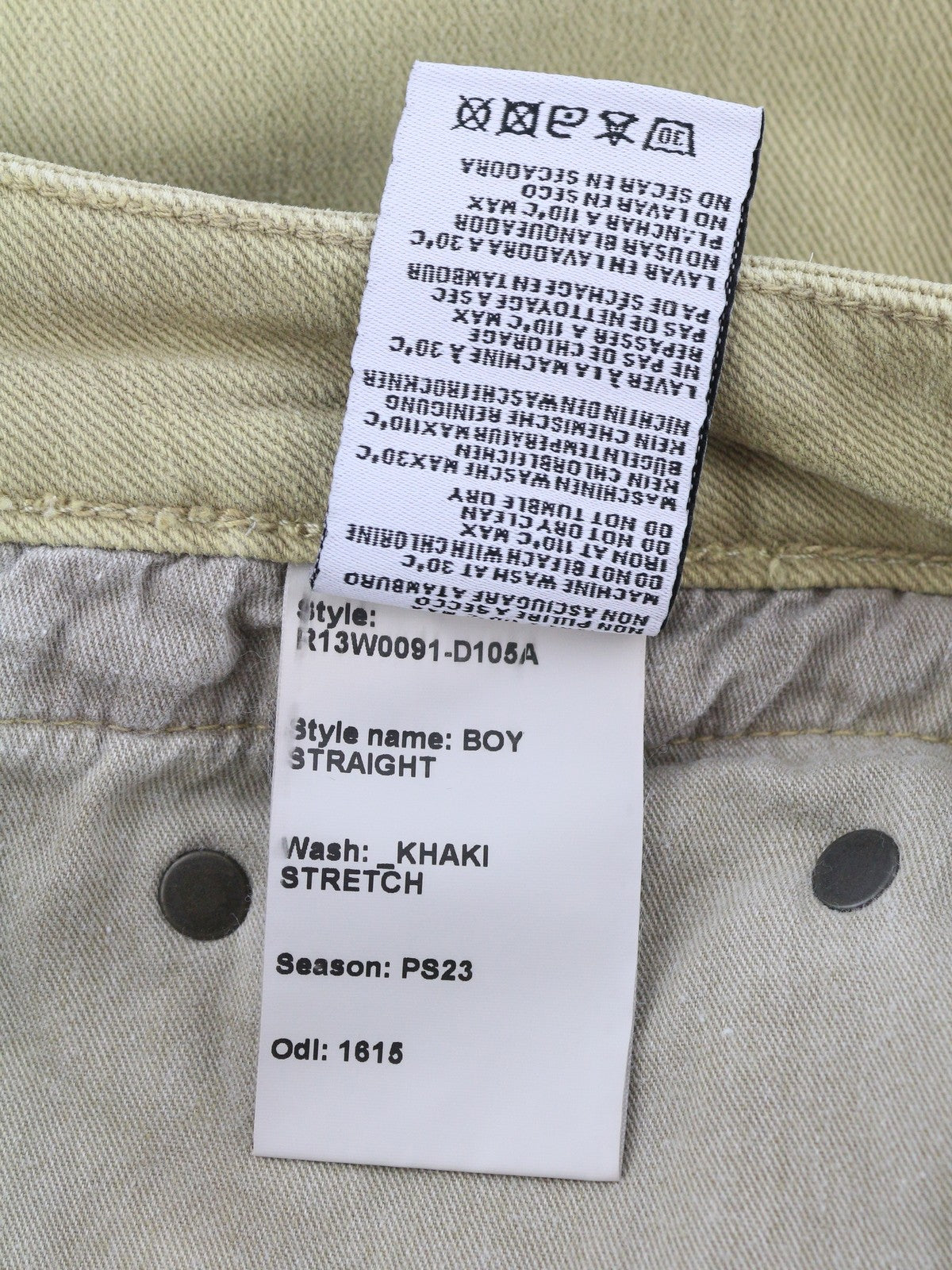 R13 Boy Straight Women Jeans 28 Khaki Stretch Denim Cropped Pockets RRP€699