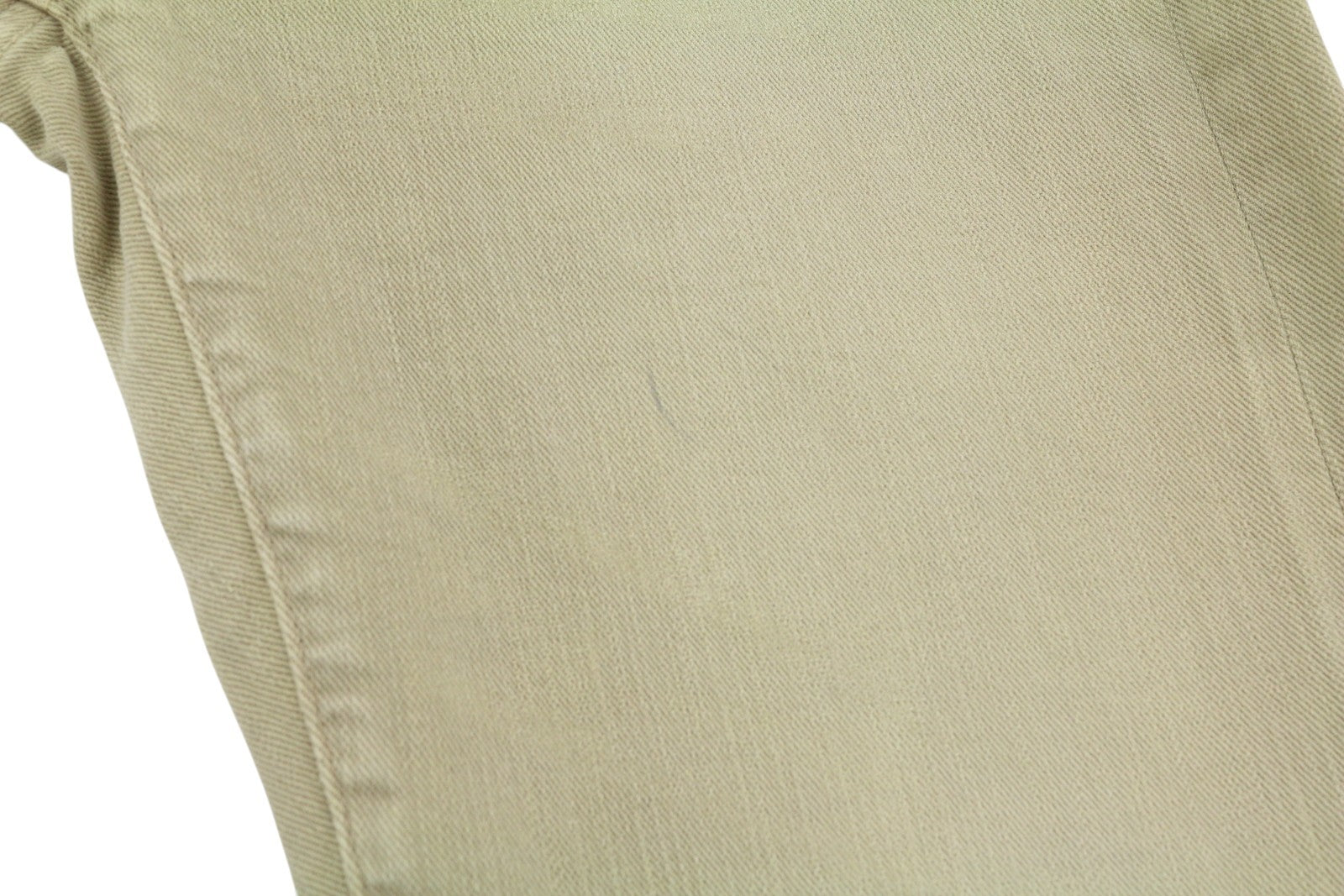Small stain on the front. The material is slightly waved (elastane is stretch out) in a few places. Please see added photos.