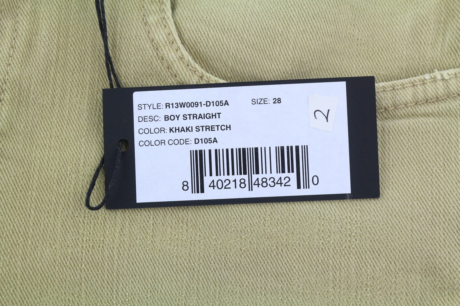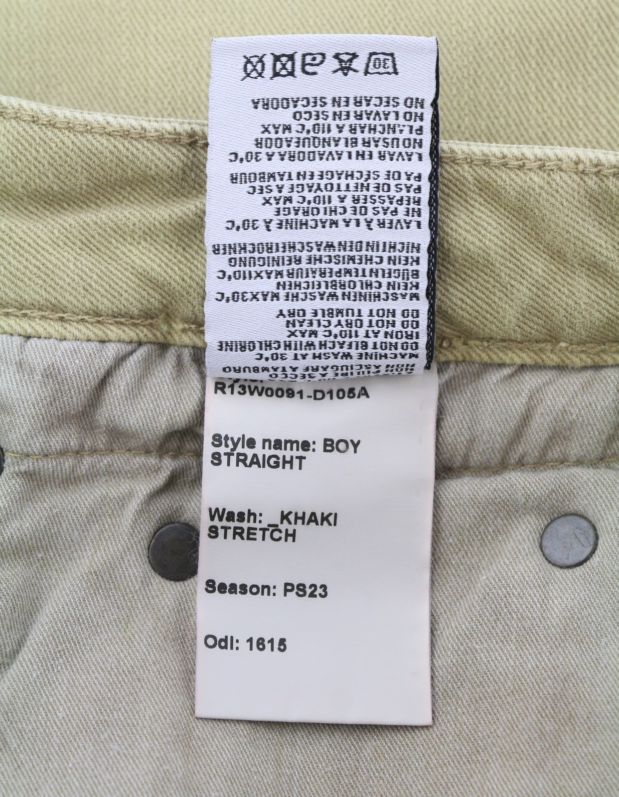 R13 Boy Straight Women Jeans 28 Khaki Stretchy Denim Cropped Pockets RRP€699