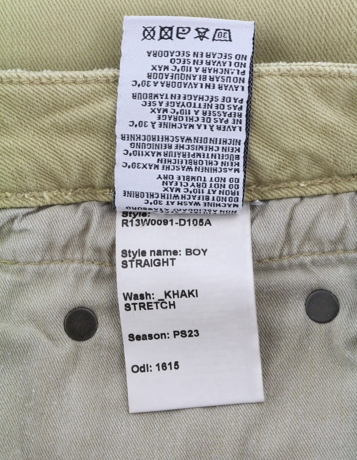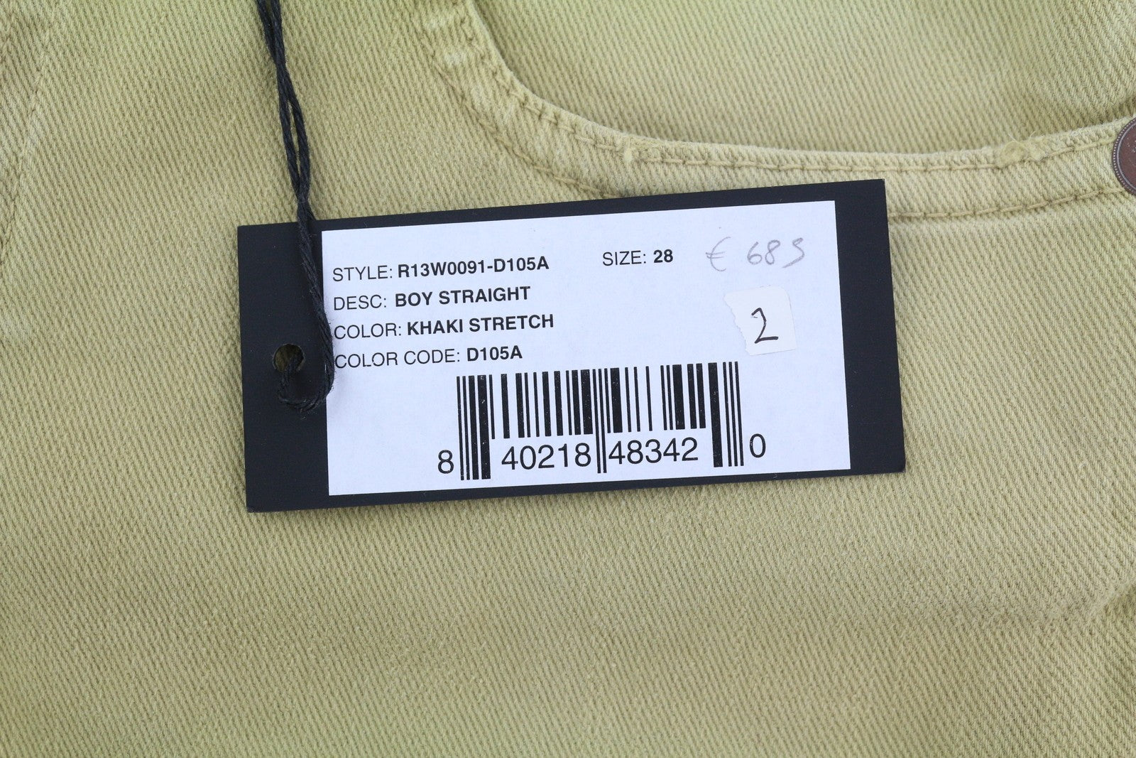 R13 Boy Straight Women Jeans 28 Khaki Stretchy Faded Ankle Length Casual RRP€699