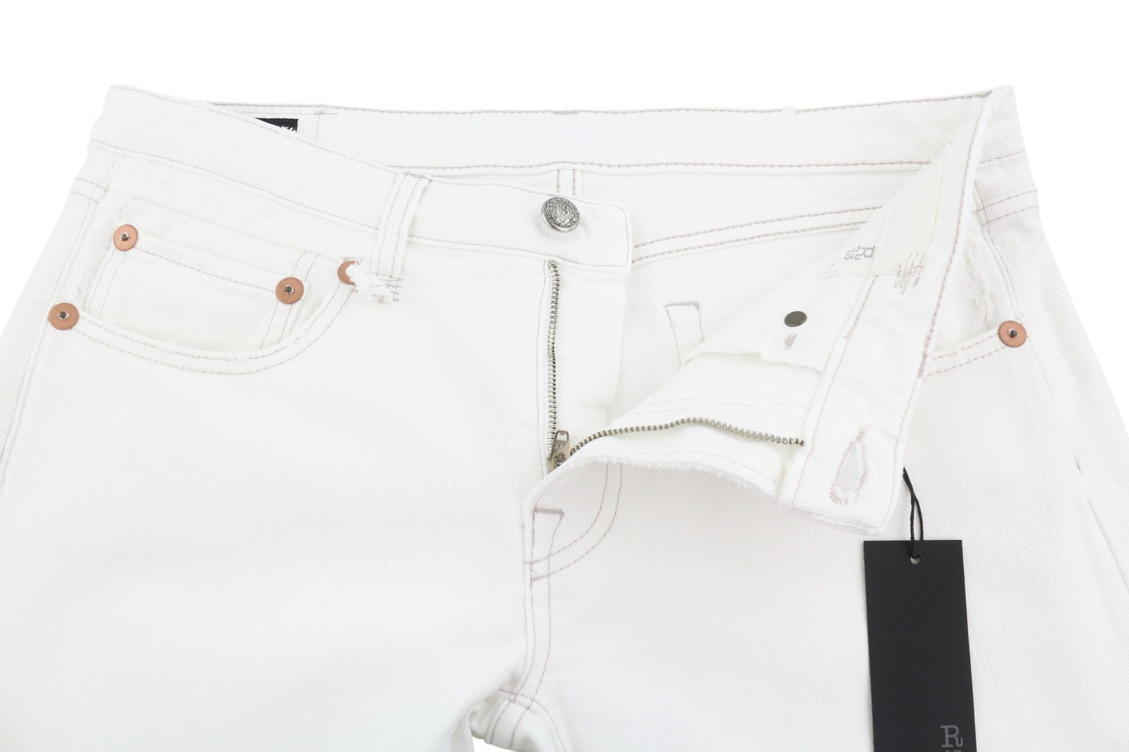 R13 Boy Straight Women Jeans 29 Bale White Cropped Ankle Zip Denim PS25 RRP499
