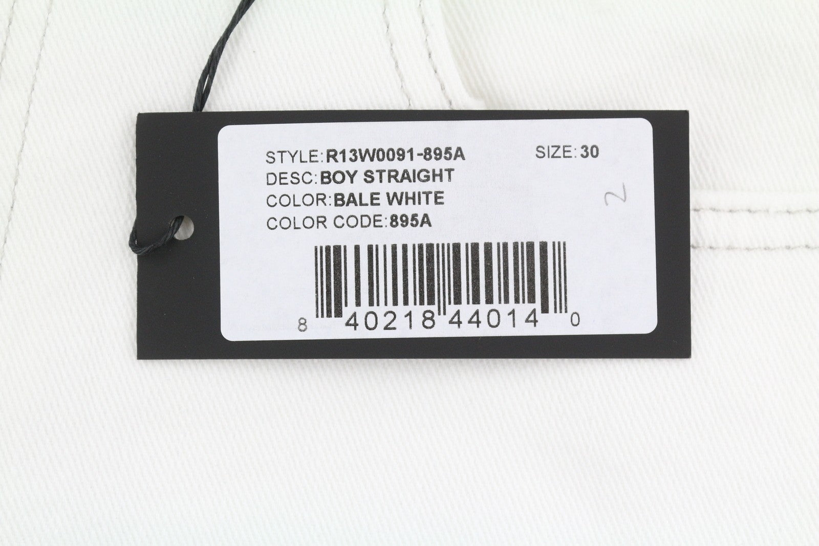 R13 berniukiški tiesūs moteriški džinsai, 30 bale, balti, trumpi, su užtrauktuku iki kulkšnies, PS25, RRP499