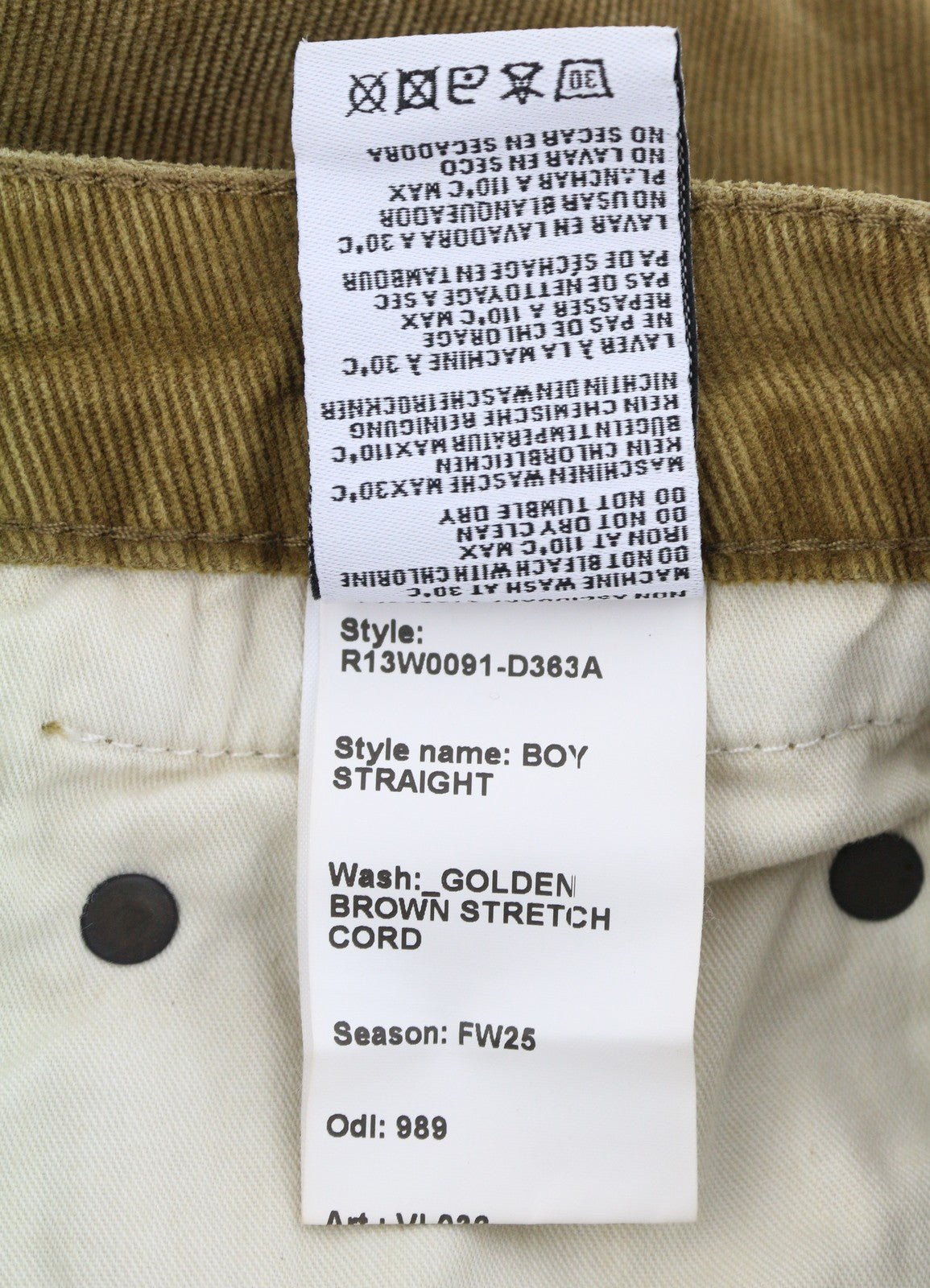 R13 berniukiškos tiesios moteriškos kelnės 25 aukso rudos spalvos su tampria virve ir trumpais užtrauktukais FW25