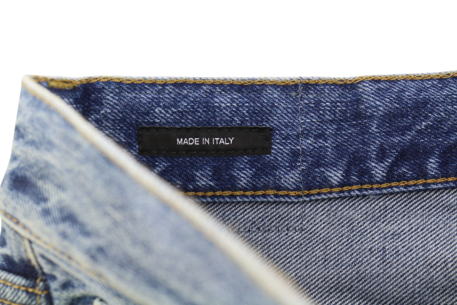 R13 Boyfriend moteriški džinsai 23 Jasper Whiskers išblukęs trumpintas užtrauktukas mėlynas džinsinis PF25
