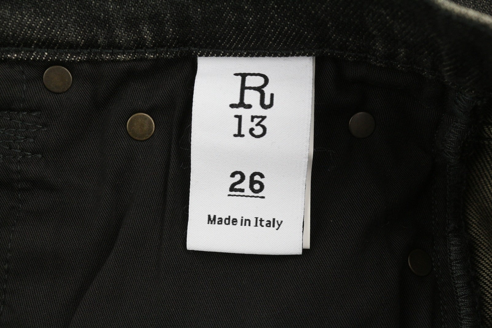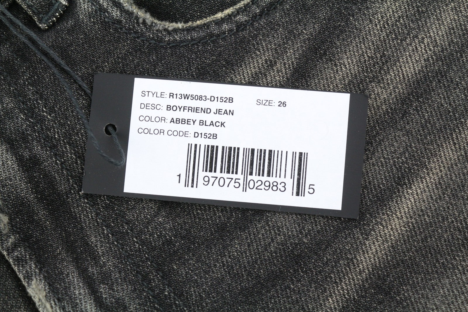 R13 „Boyfriend“ moteriški džinsai, 26 dydžio, plėšyti tiesūs, skalbti, „Abbey“ stiliaus, rekomenduojama kaina – 695 €