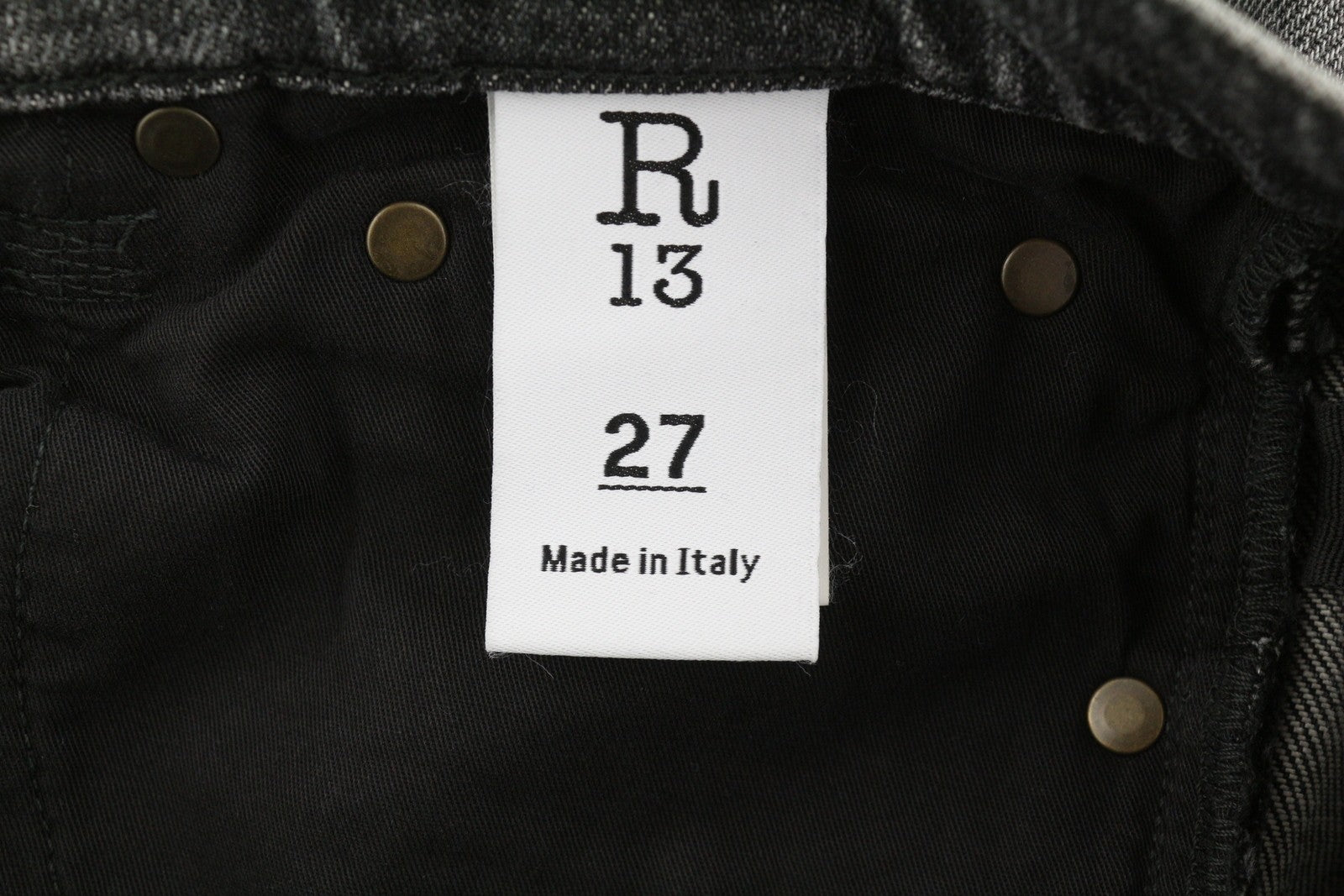 R13 Boyfriend Women Jeans 27 Vintage Grey Washed Faded Denim Zip Ankle Length