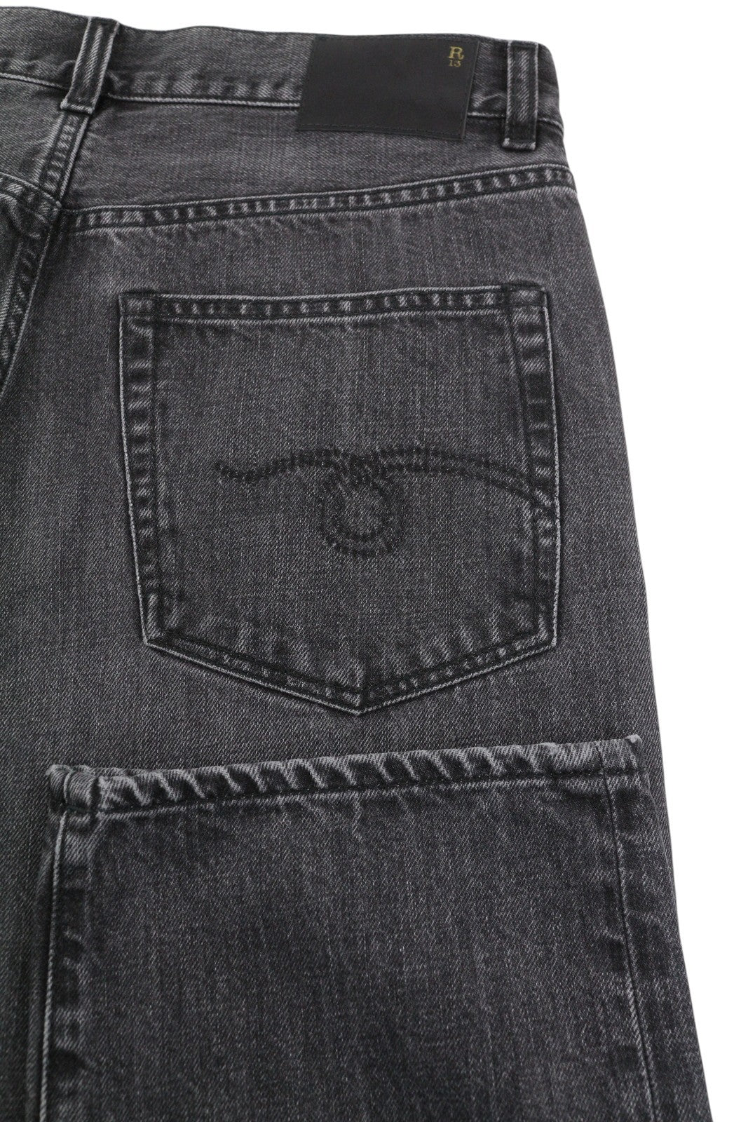 R13 Boyfriend moteriški džinsai 27 Wilson juodi ūsai su išblukusiais trumpais džinsais PS25