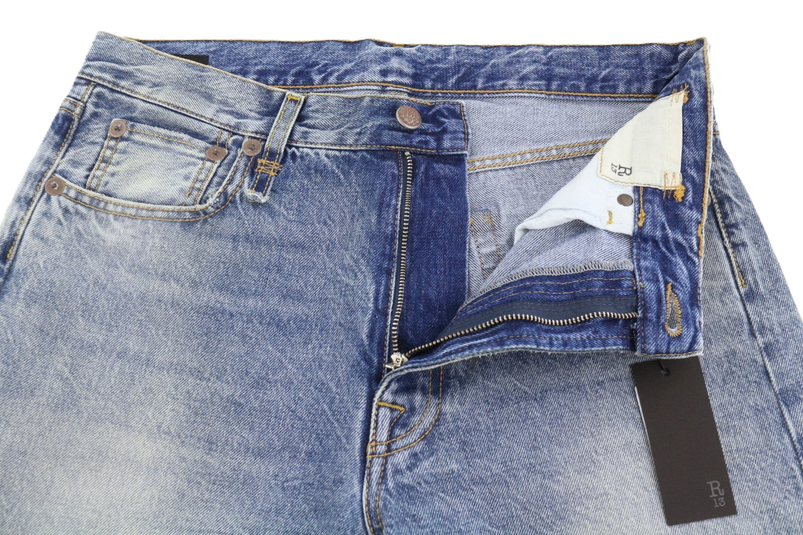 R13 Boyfriend moteriški džinsai, 28 Jasper trumpinti ūsai, skalbtos mėlynos spalvos, FW25, RRP699