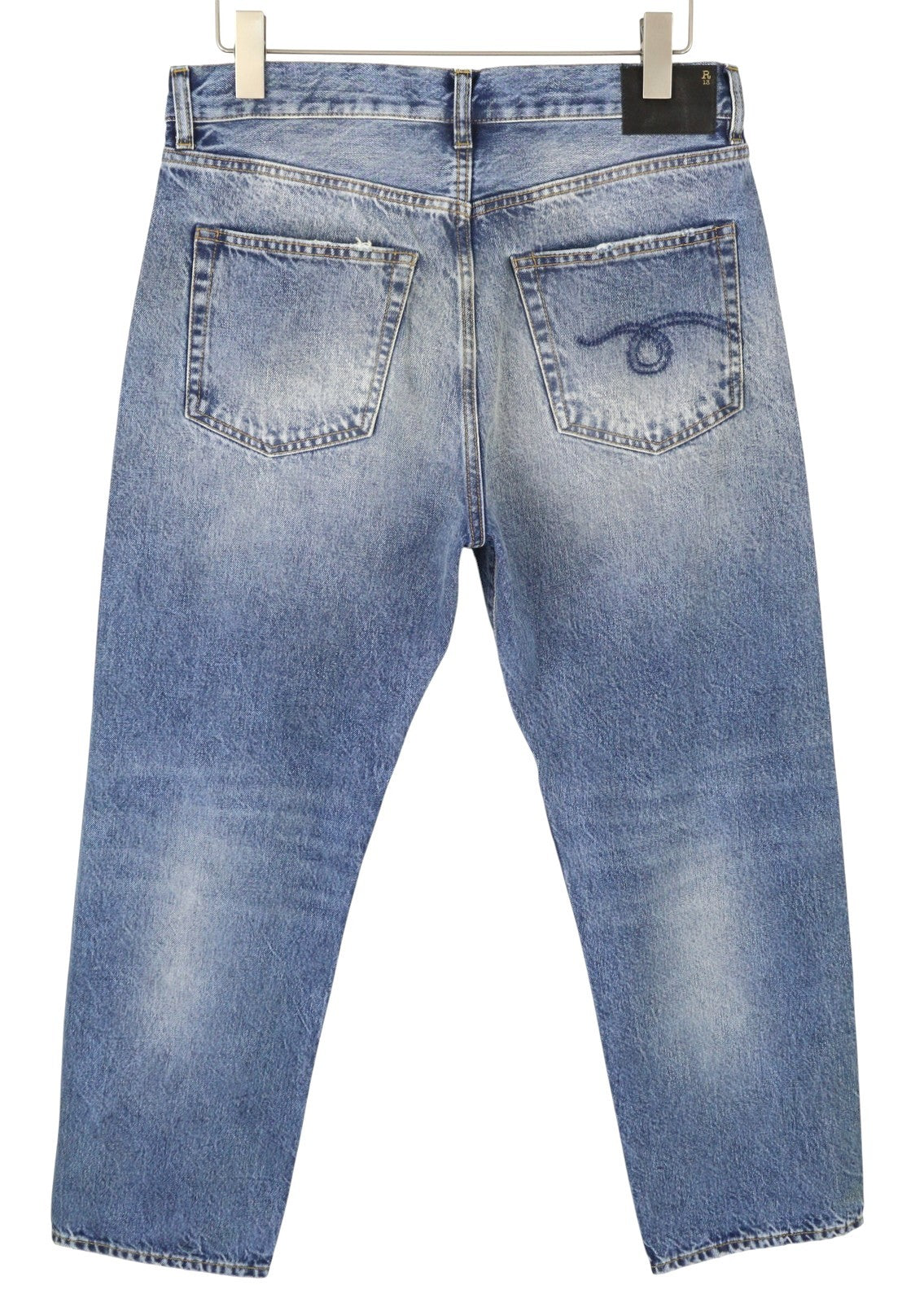 R13 Boyfriend moteriški džinsai 28 Jasper trumpinti užtrauktuku, ūsai, išblukusi mėlyna FW25