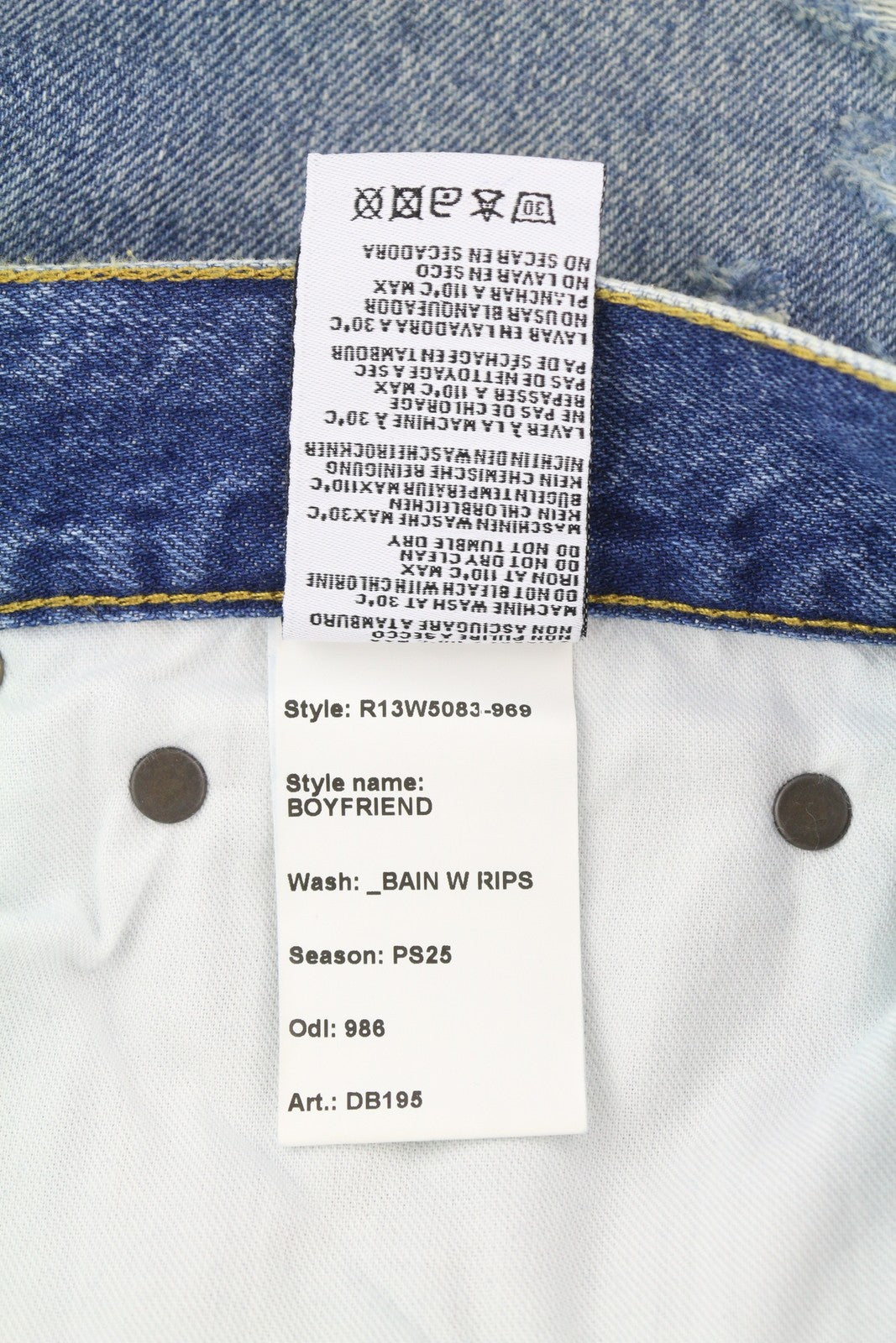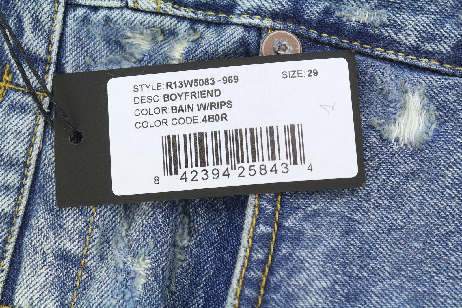 R13 Boyfriend moteriški džinsai, 29 m., su plėšytomis juostelėmis, išblukusiomis kulkšnimis, PS25, rekomenduojama mažmeninė kaina – 595 €