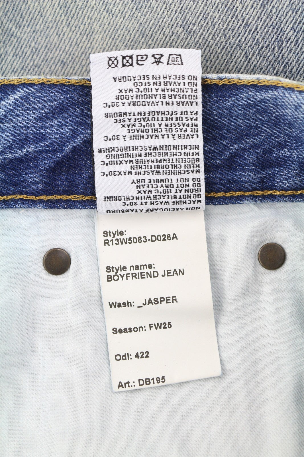R13 Boyfriend Women Jeans 30 Jasper Straight Fit Whiskers Faded Blue Zip FW25
