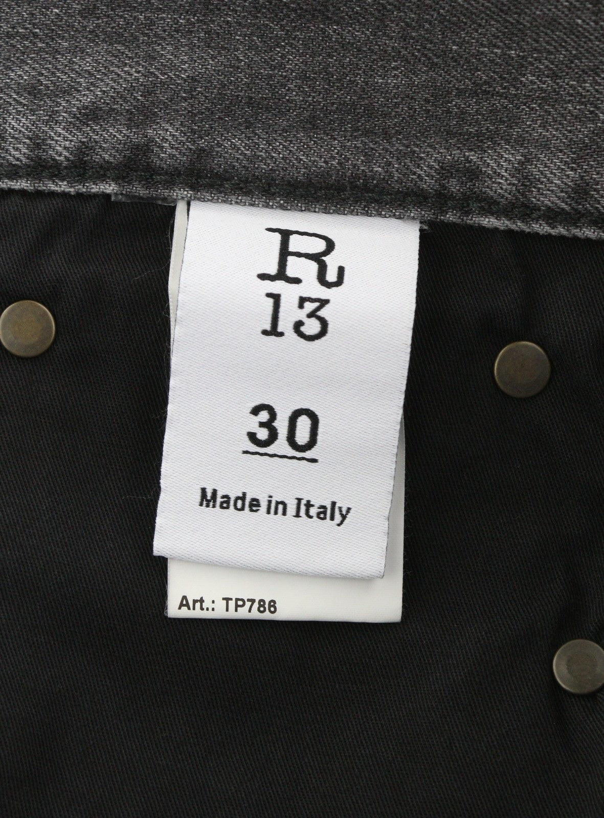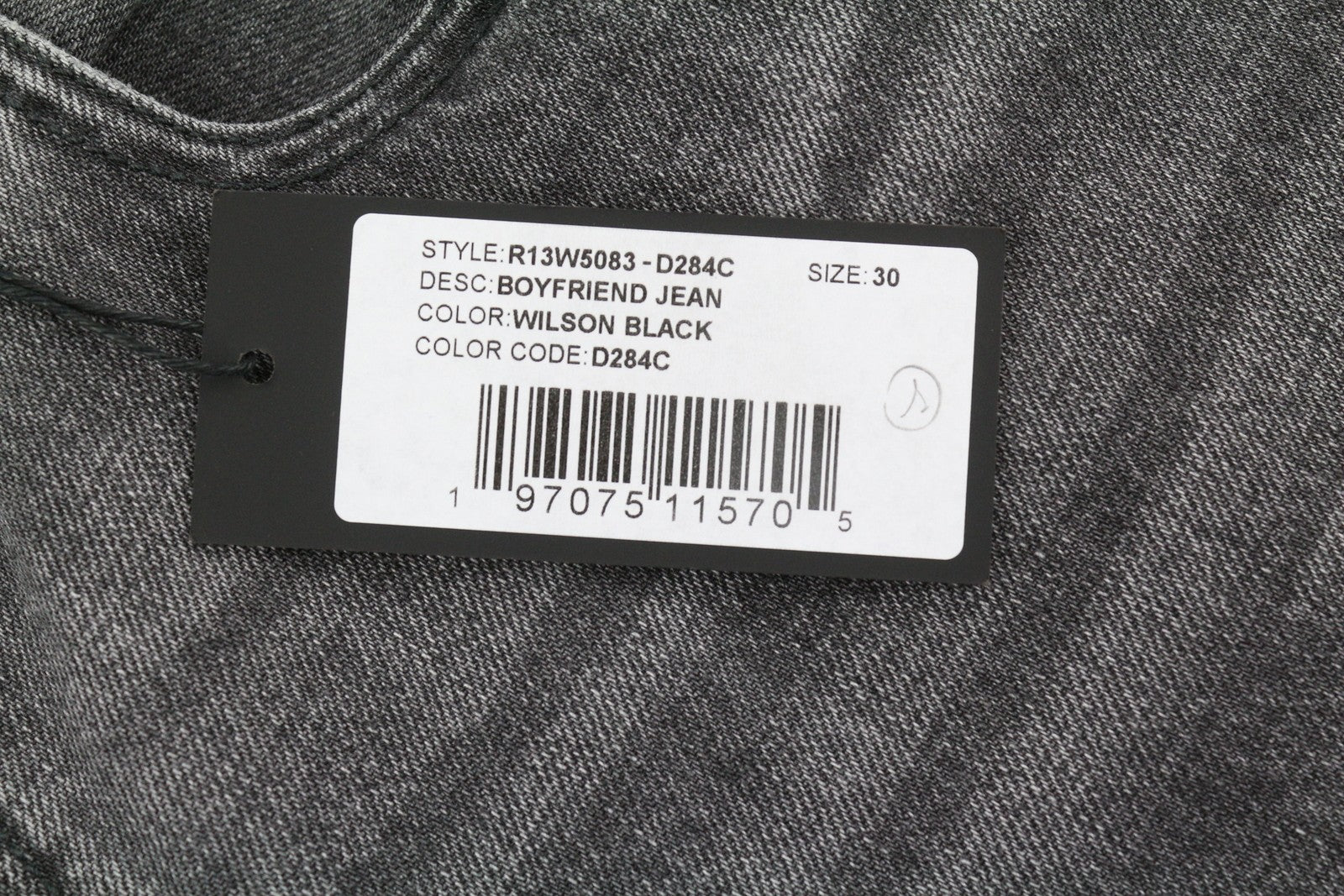 R13 Boyfriend Women Jeans 30 Wilson Black Faded Ankle Cropped Relaxed Fit Denim