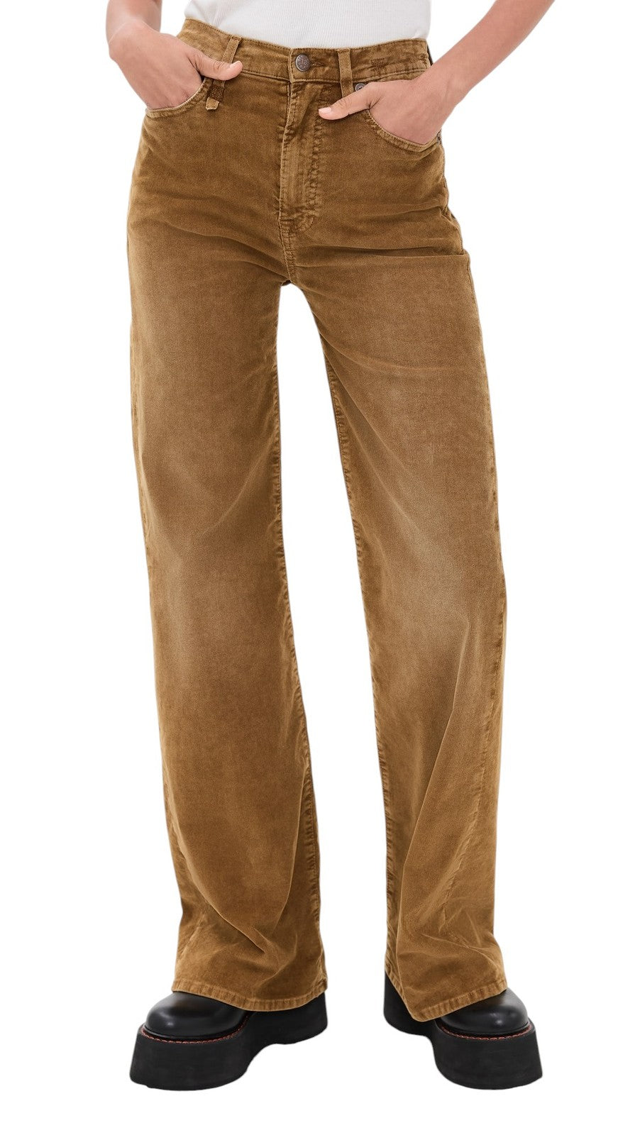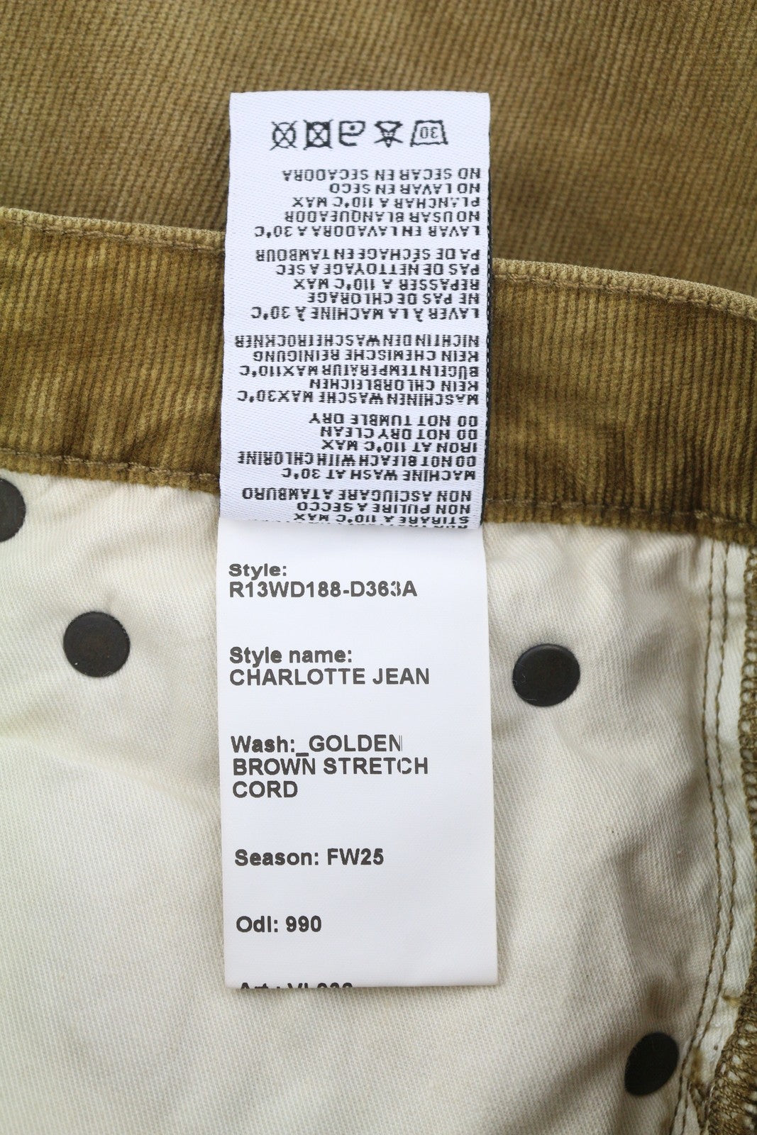 R13 Charlotte moteriškos kelnės 24 aukso rudos spalvos su tampriu virvele ir platėjančiomis FW25 RRP599