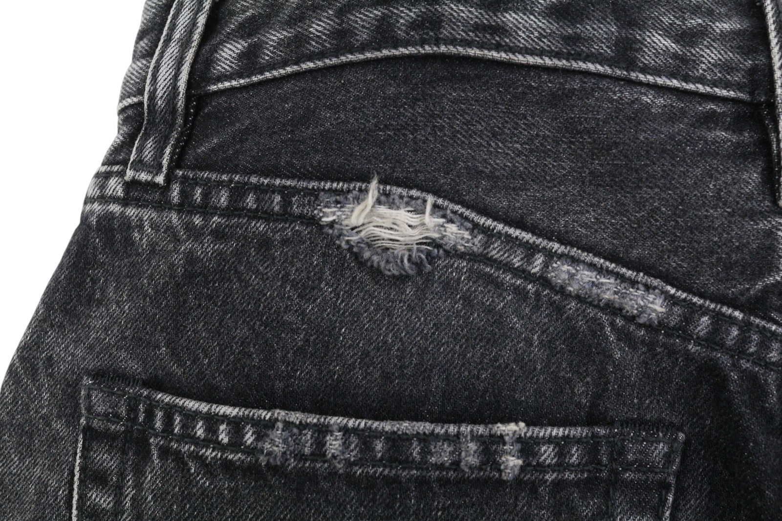 R13 Courtney Slim Women Jeans 25 Everit Black Faded Cropped Distress Zip Denim