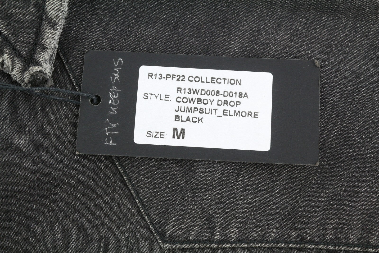 R13 kaubojiškas moteriškas kombinezonas M Elmore juodas išblukęs drabužių dizainas didelis dydis RMK 1699 €