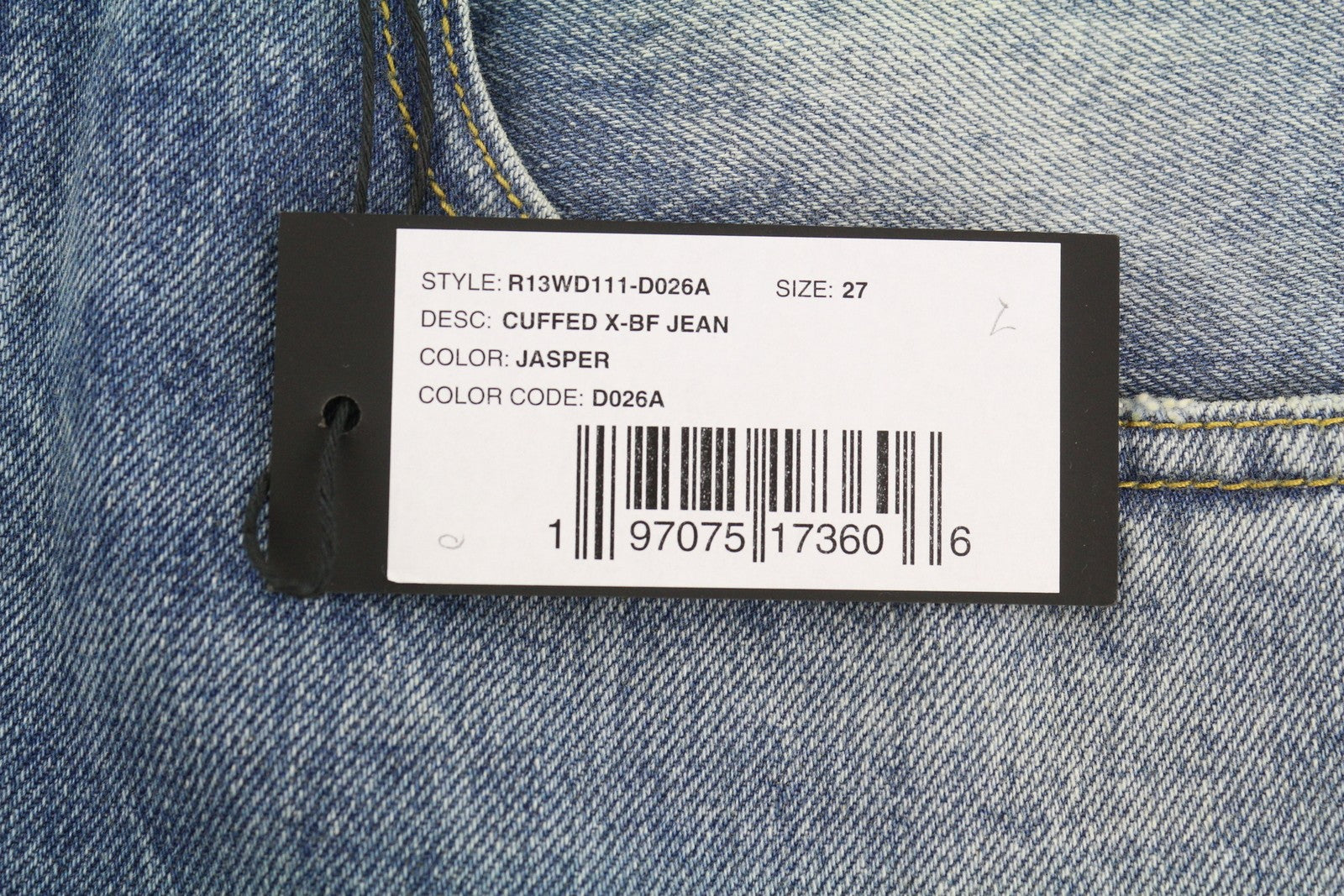 R13 Cuffed X-BF moteriški džinsai su rankogaliais 27 Jasper Straight Fit Ūsai Išblukusi mėlyna PF25