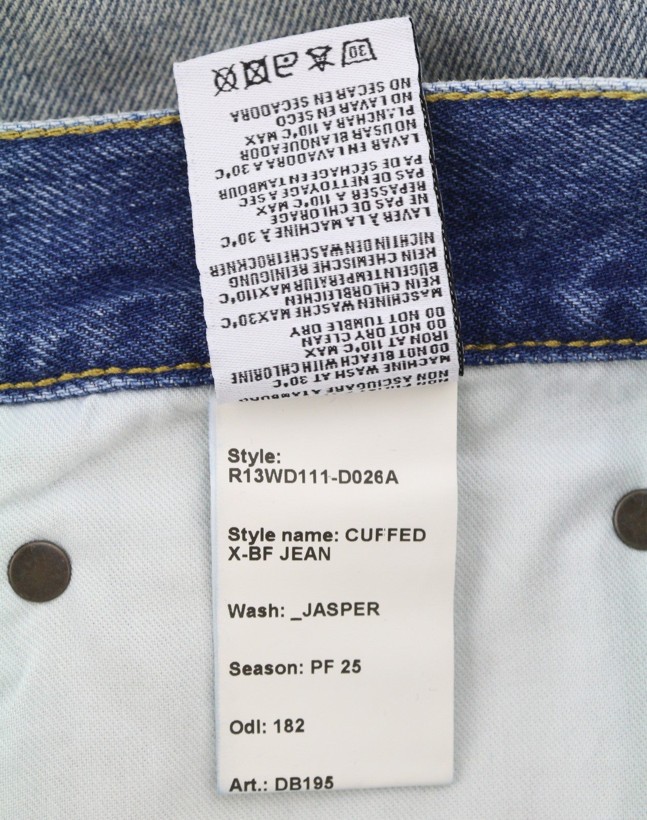 R13 Cuffed X-BF moteriški džinsai su rankogaliais, 29 Jasper Straight Fit, ūsai, išblukusi mėlyna, PF25