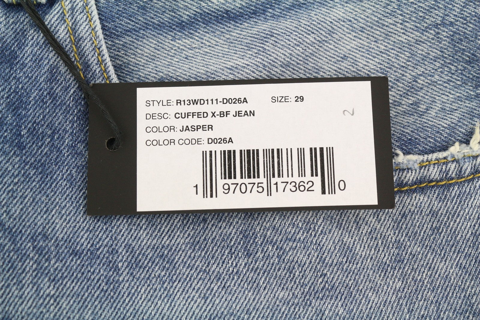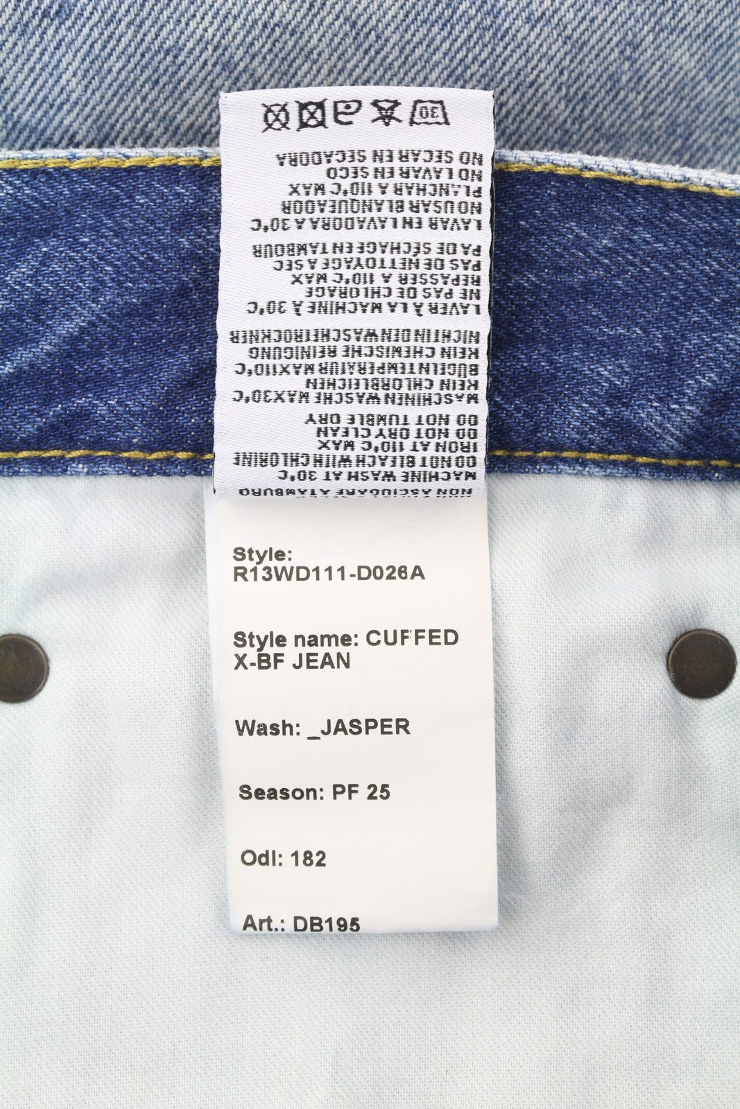 R13 Cuffed X-BF moteriški džinsai su rankogaliais, 29 Jasper Straight ūsai, išblukusi mėlyna spalva, užtrauktukas PF25