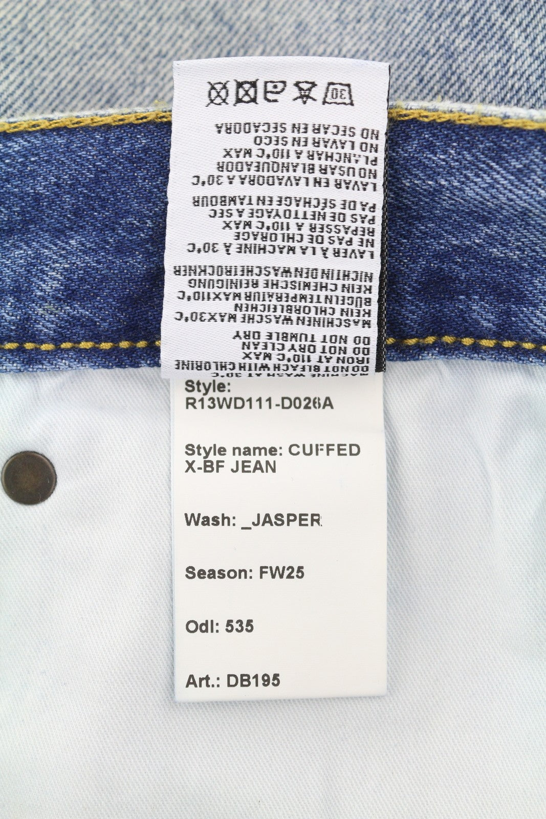R13 Cuffed X-BF moteriški džinsai su rankogaliais, 30 Jasper tiesaus kirpimo, išblukintos mėlynos spalvos, su užtrauktuku, FW25