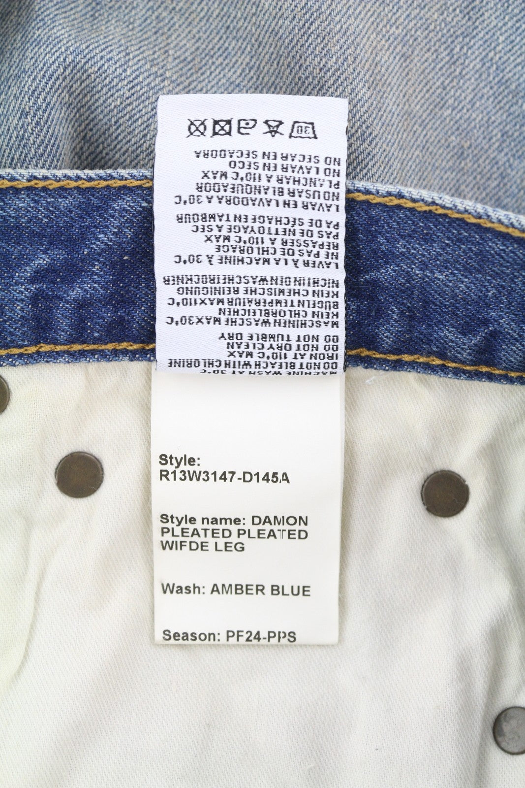 R13 Damon klostuoti plačių klešnių moteriški džinsai 27 gintaro mėlynumo, išblukę, nešvariai atrodantys džinsai