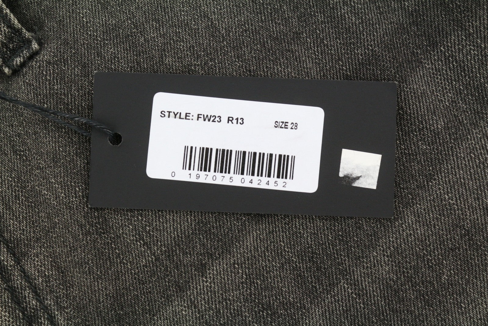 R13 Damon klostuoti moteriški džinsai 28 Ellery juodi išblukinti skalbti tiesūs plačios klešnės