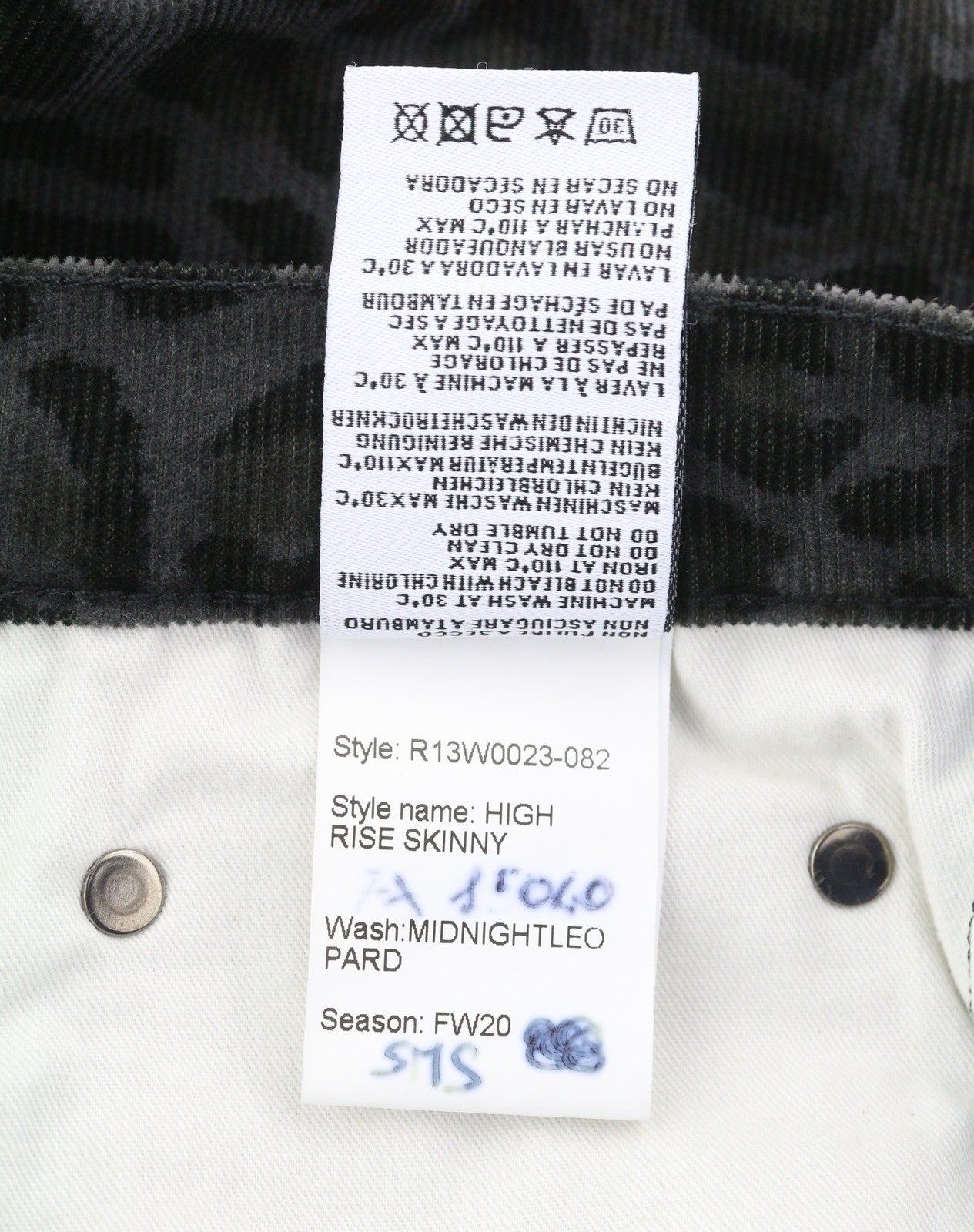 R13 Aukšto liemens aptemptos moteriškos kelnės 27 vidurnakčio leopardo rašto velveto užtrauktuku pilkos