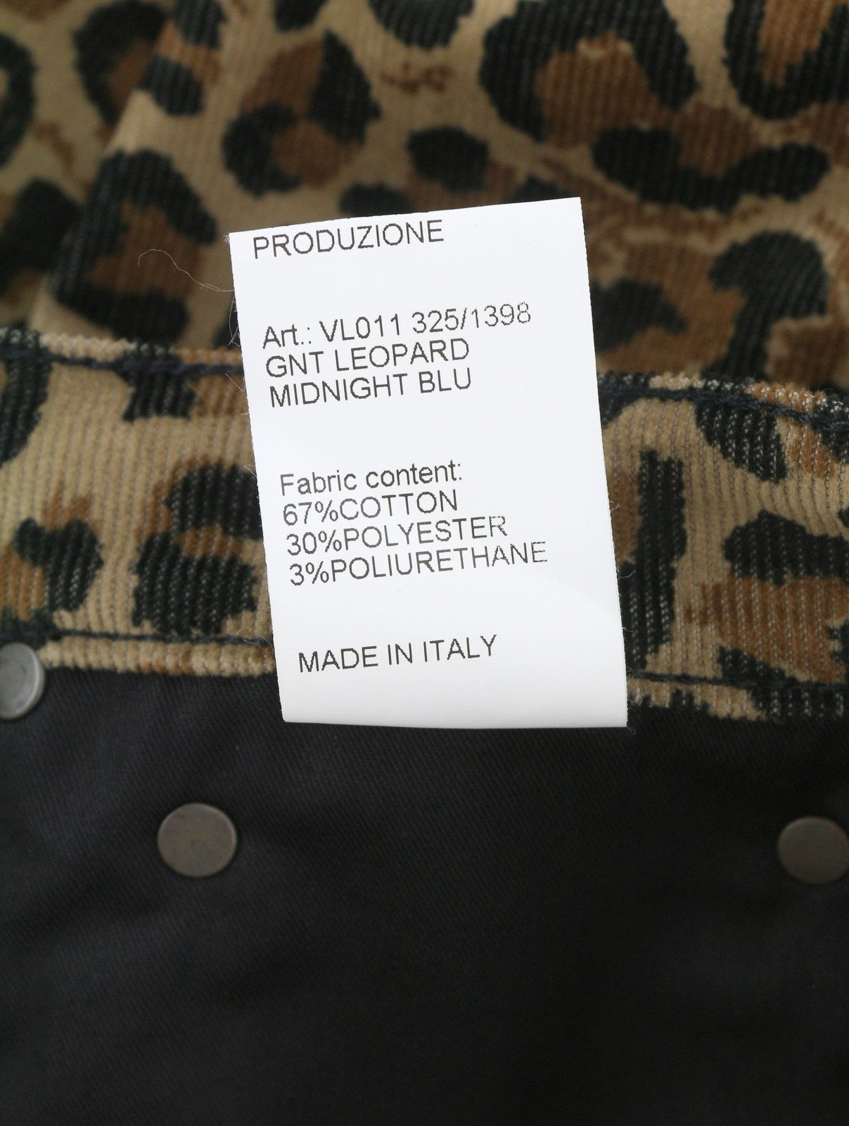 R13 Aukšto liemens aptemptos moteriškos kelnės W29 Vidurnakčio leopardo rašto velvetas su užtrauktuku, rudos spalvos
