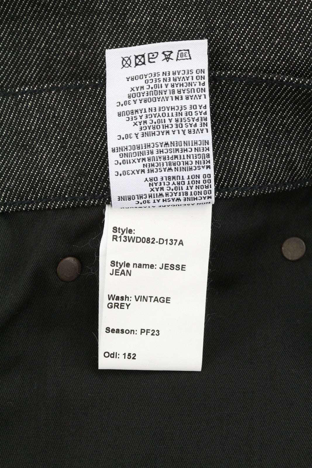 R13 Jesse moteriški džinsai, 31 dydis, pilki, laisvo kirpimo, tamsaus džinso spalvos.