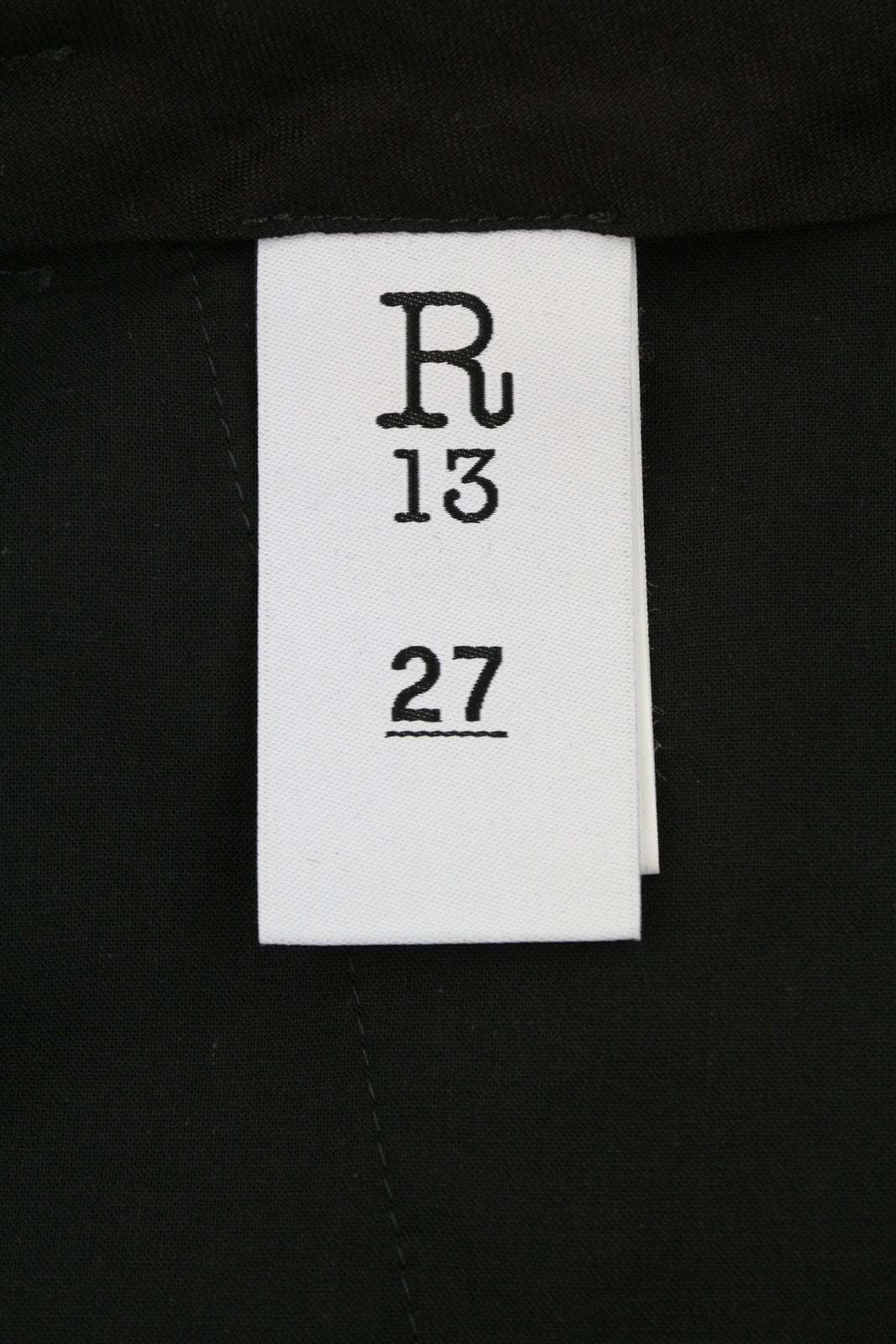 R13 Jumbo pritaikytos moteriškos kelnės 27 rudos lininės Bermudų stiliaus su lašeliu tarpkojyje SS25 RRP799