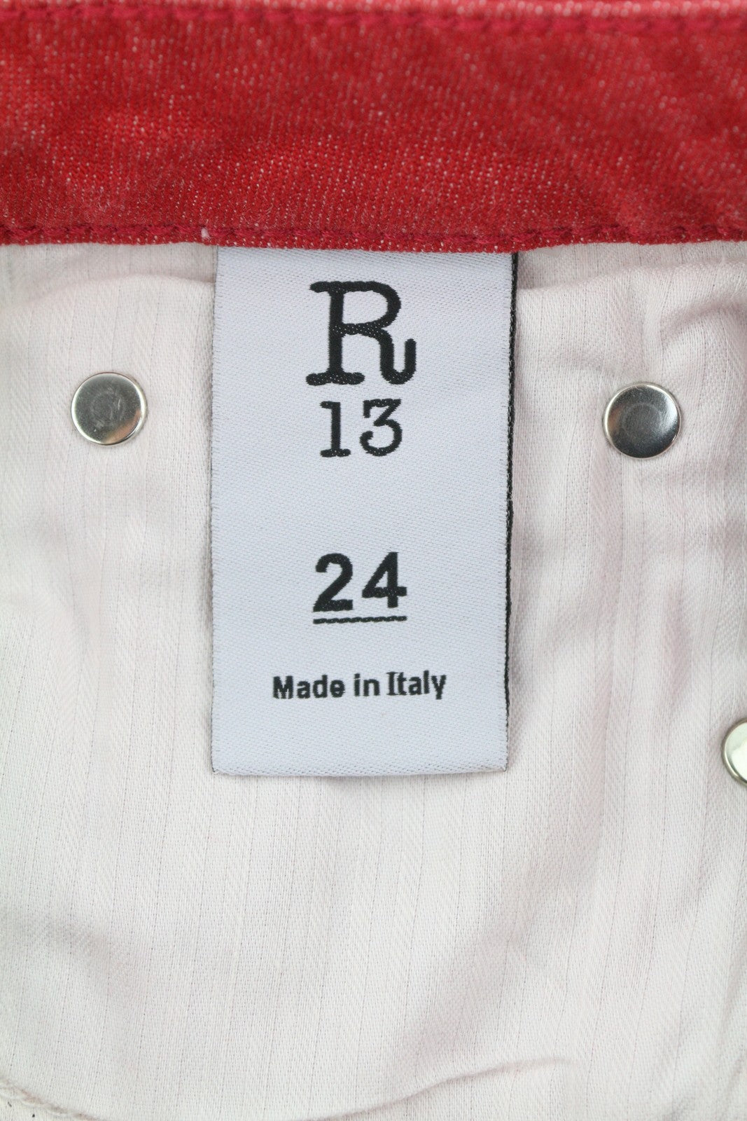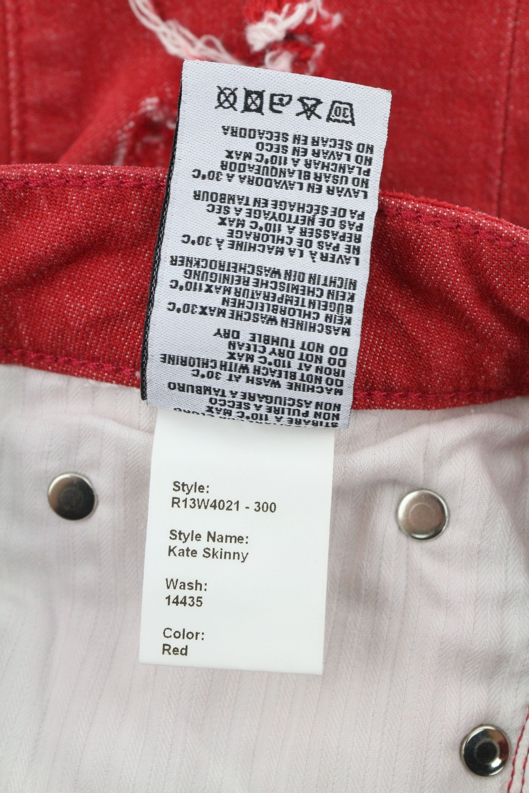 R13 Kate Skinny Women Jeans 24 Red Distress Ripped Ankle Length Skinny Fit Denim