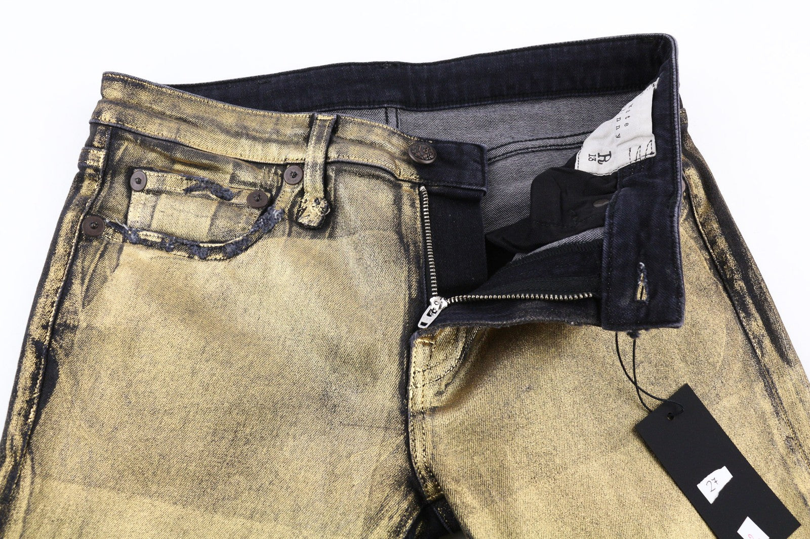 R13 Kate Women's Jeans 27 Skinny Fit Coated Gold Waxed Cotton Stretch