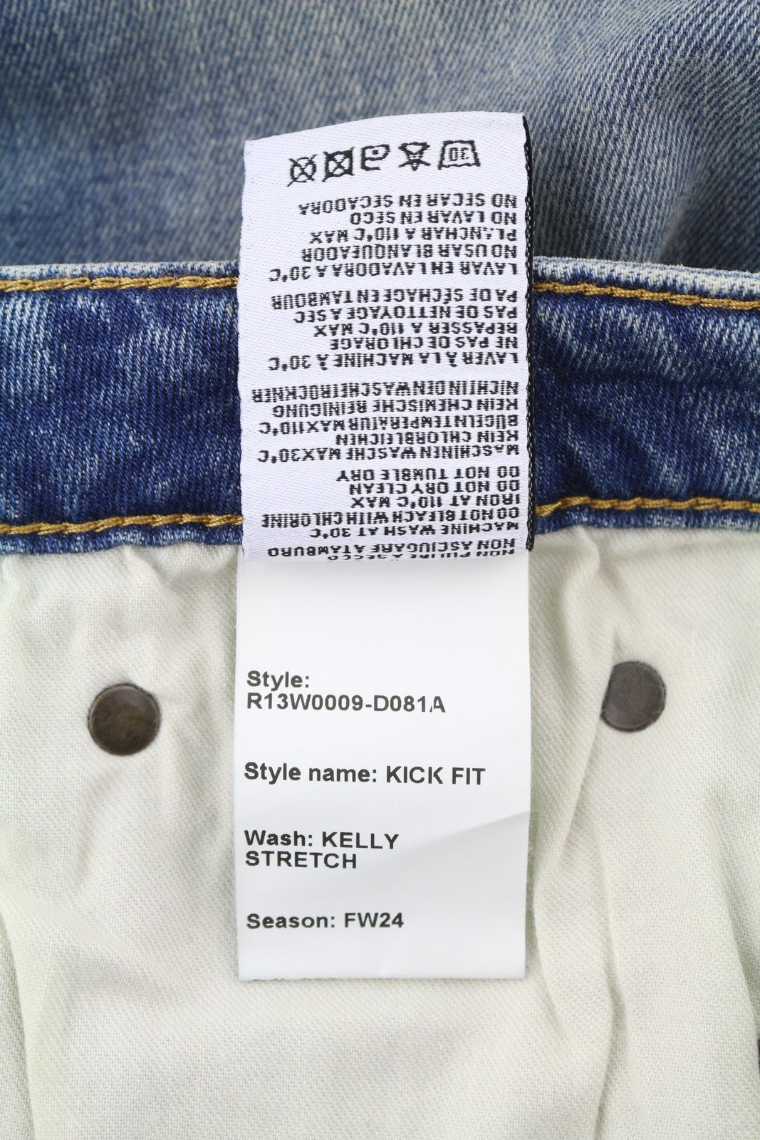 R13 Kick Fit Women Jeans 27 Kelly Stretch Washed Faded Ankle Cropped RRP€699