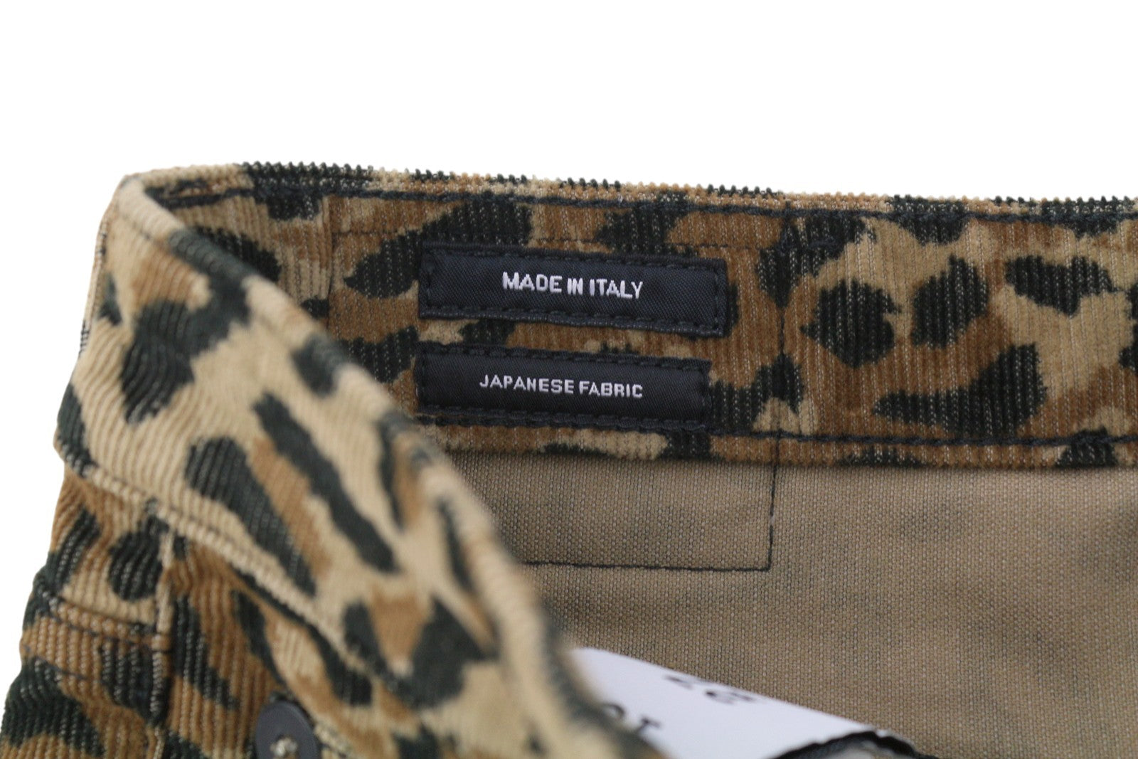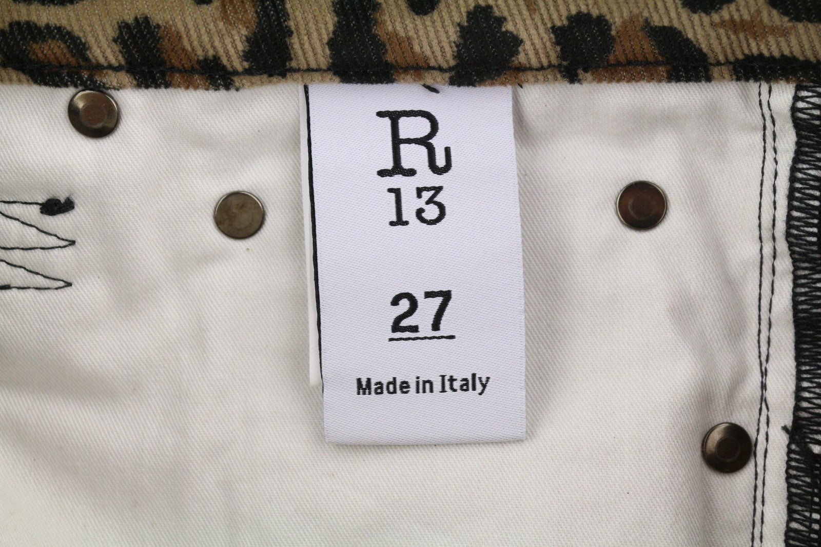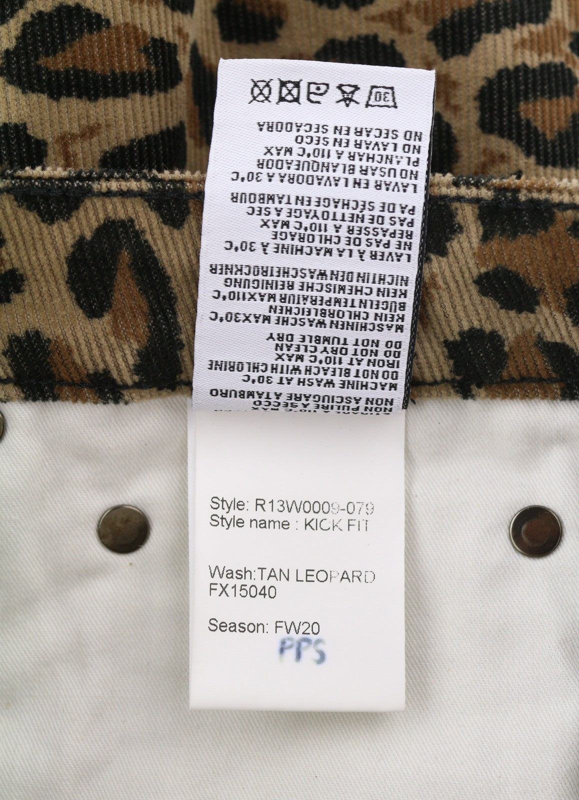 R13 Kick Fit moteriškos kelnės 27 gelsvai rudos leopardo rašto, aptemptos, platėjančios, iki kulkšnių, rudos