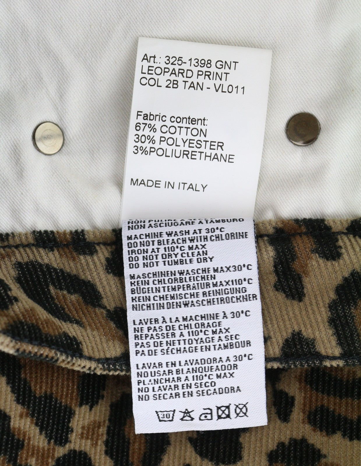 R13 Kick Fit moteriškos kelnės 27 gelsvai rudos leopardo rašto, aptemptos, platėjančios, iki kulkšnių, rudos