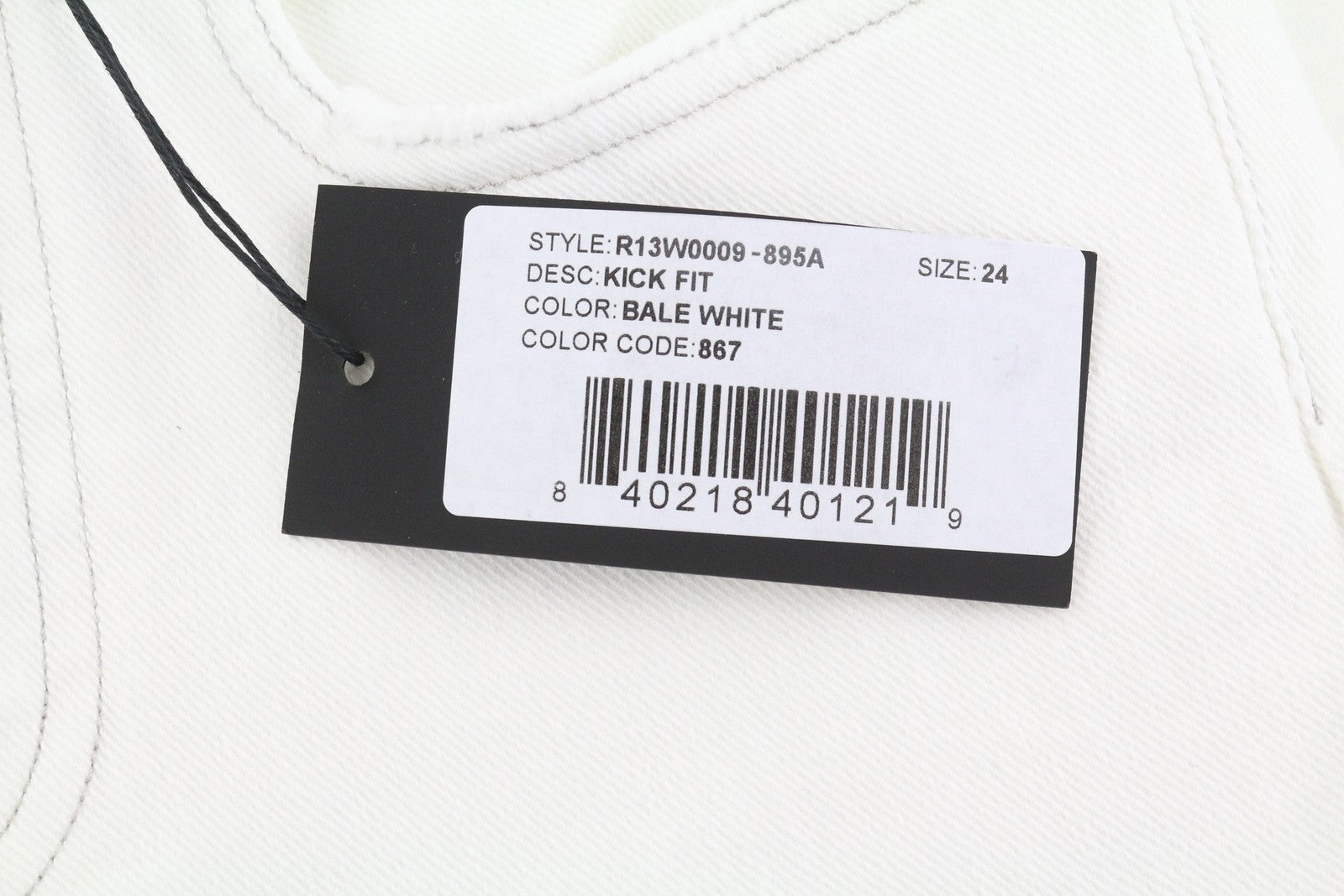 R13 Kick moteriški džinsai, 24 colių, laisvo kirpimo, su užtrauktuku, laisvalaikio, iki kulkšnies, balti, rekomenduojama kaina – 526 €