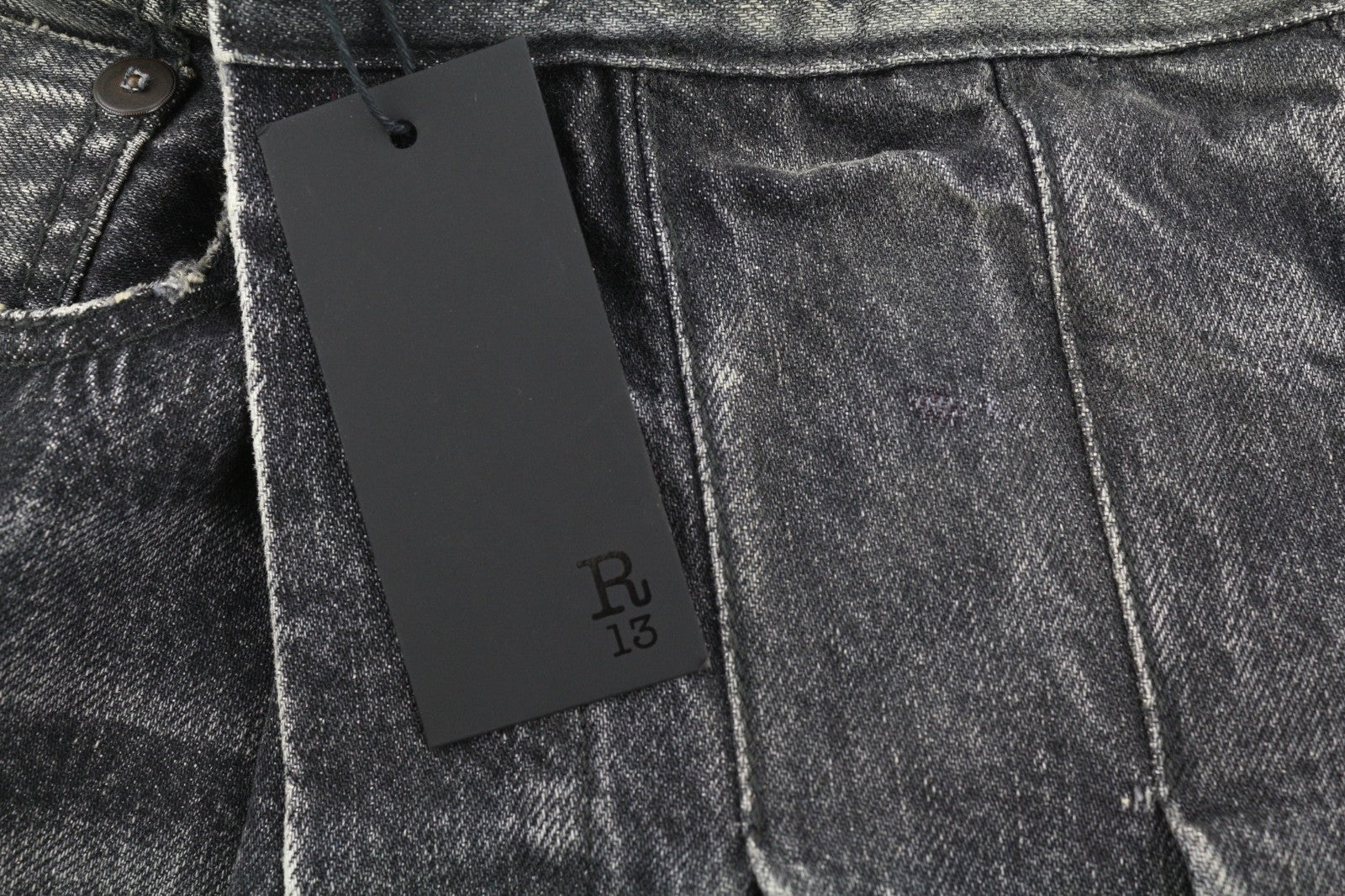 R13 Kilted Damon moteriški džinsai 27 Everit juodas blukintas sijonas aukštu juosmeniu RRP 899 €