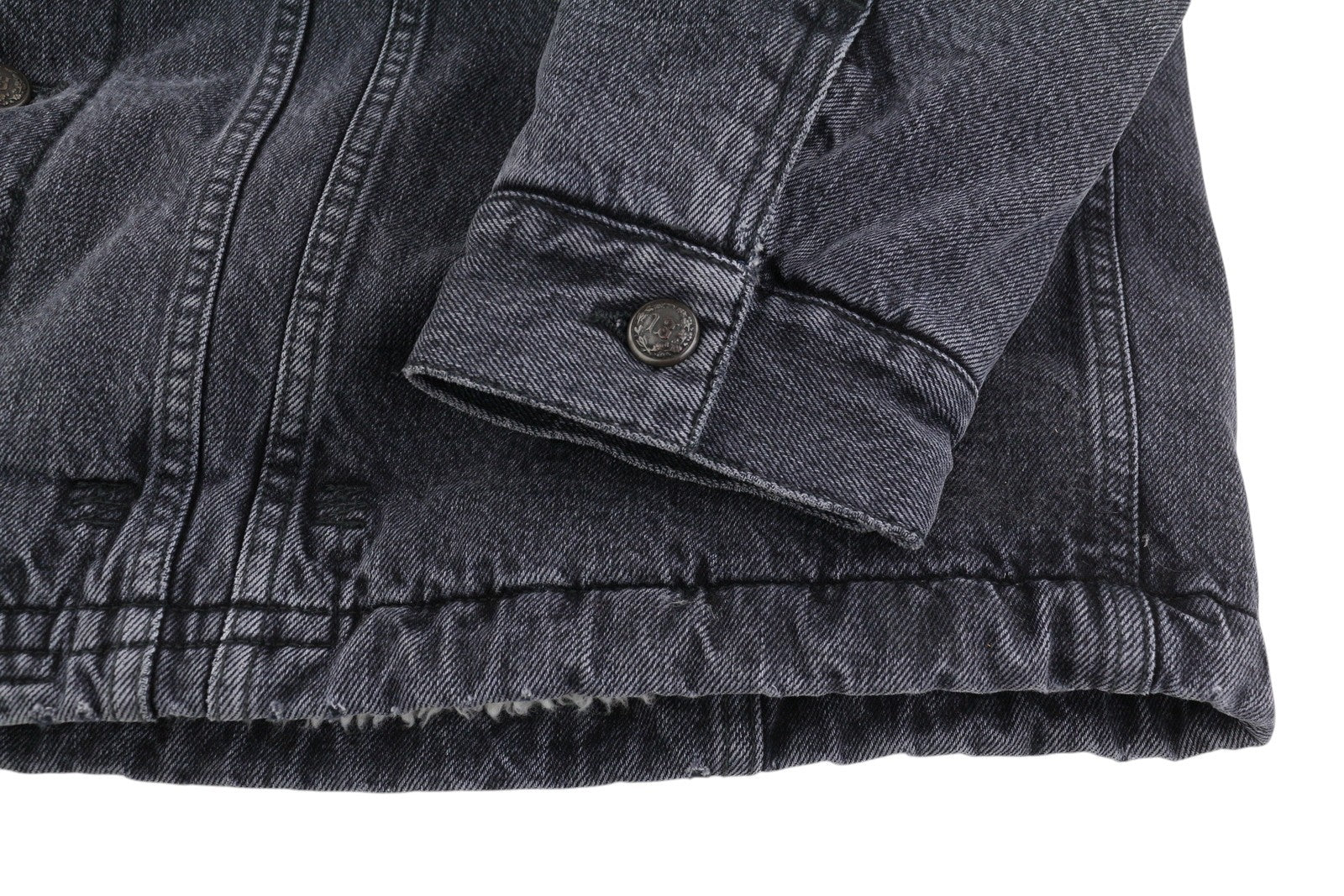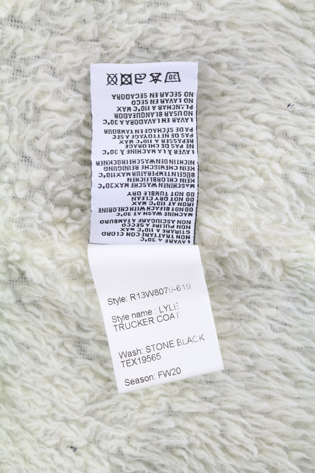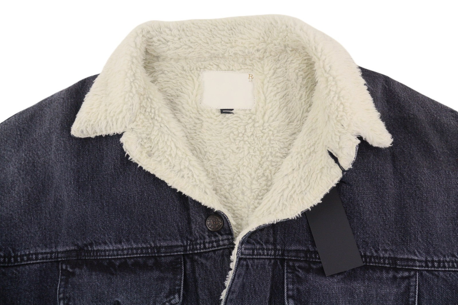 R13 Lyle Trucket paltas moteriškas švarkas M akmens juodos spalvos su šerpų pamušalu džinsinis ilgas RRP999