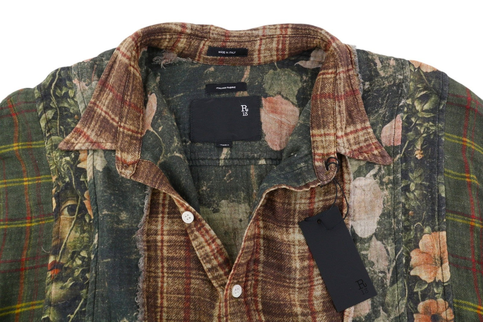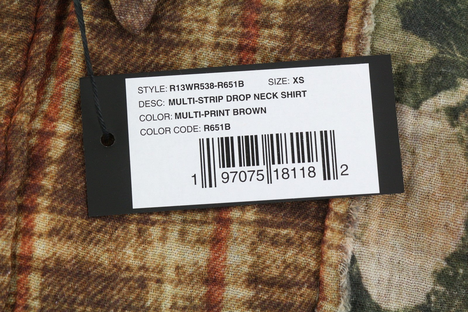 R13 Daugiaspalviai juostelių apvalios apykaklės moteriški marškiniai, XS dydžio, gėlėti, dideli, laisvi, FW25, RRP945