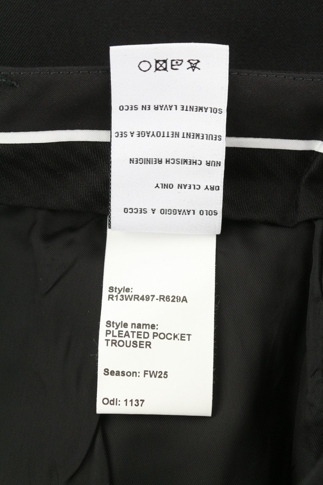 R13 Klojuotos moteriškos kelnės su kišenėmis 27 juodos vilnonės tiesaus kirpimo kelnės su sagomis FW25