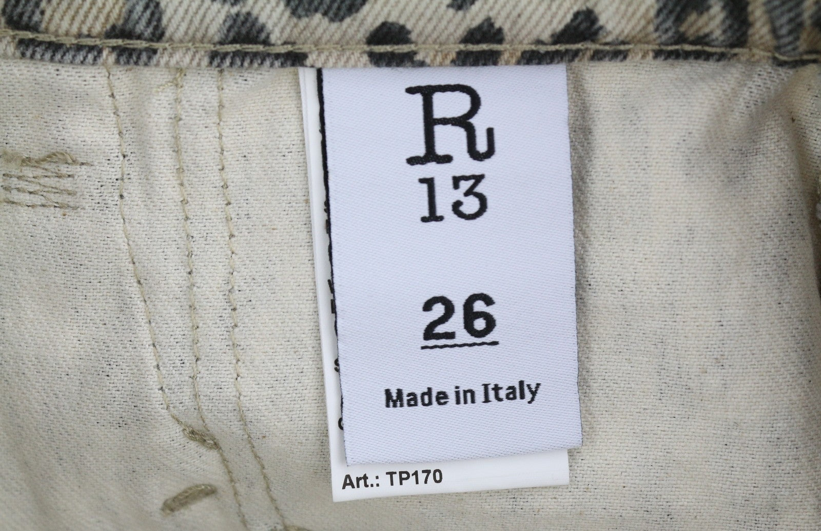 R13 Pouch Pocket Women Shorts 26 Rigid Denim Leopard Pattern Turn-Up RRP795