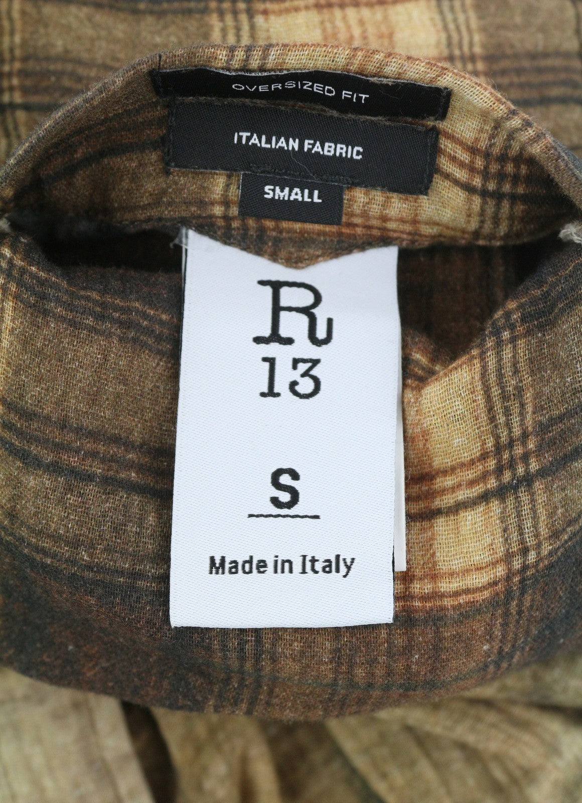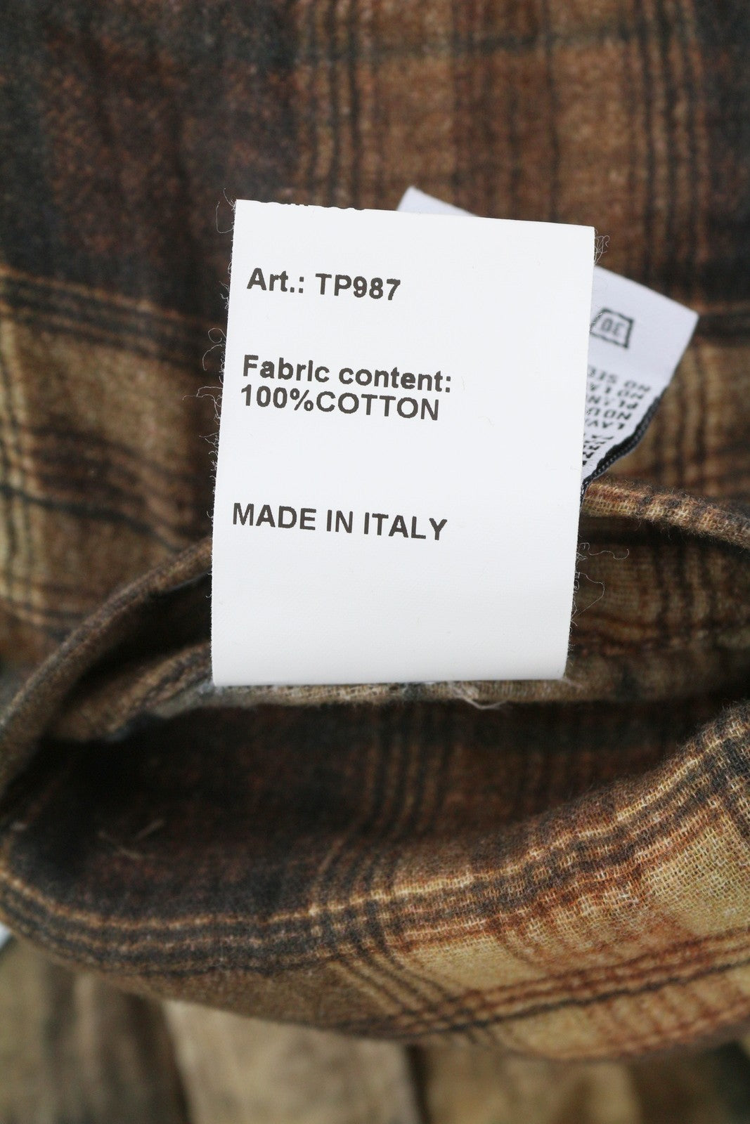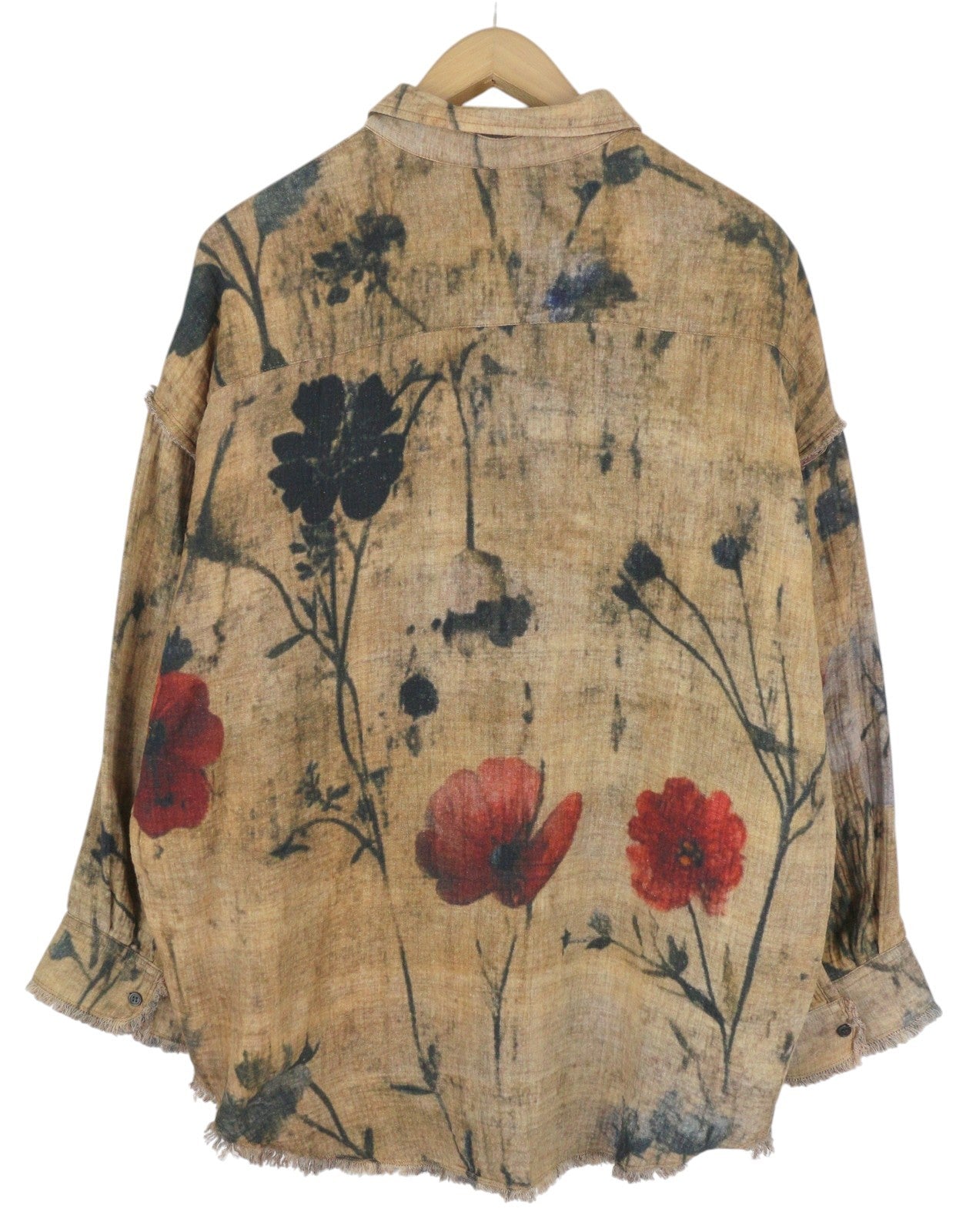 R13 Dvipusiai moteriški marškiniai su nugara S dydžio languotais kraštais ir chaki spalvos gėlėmis PF25 RRP1045