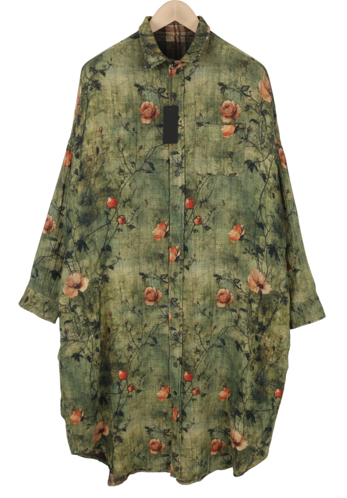 R13 dvipusė jumbo marškinių suknelė moterims M/L turkio spalvos gėlėta PF25 RRP899
