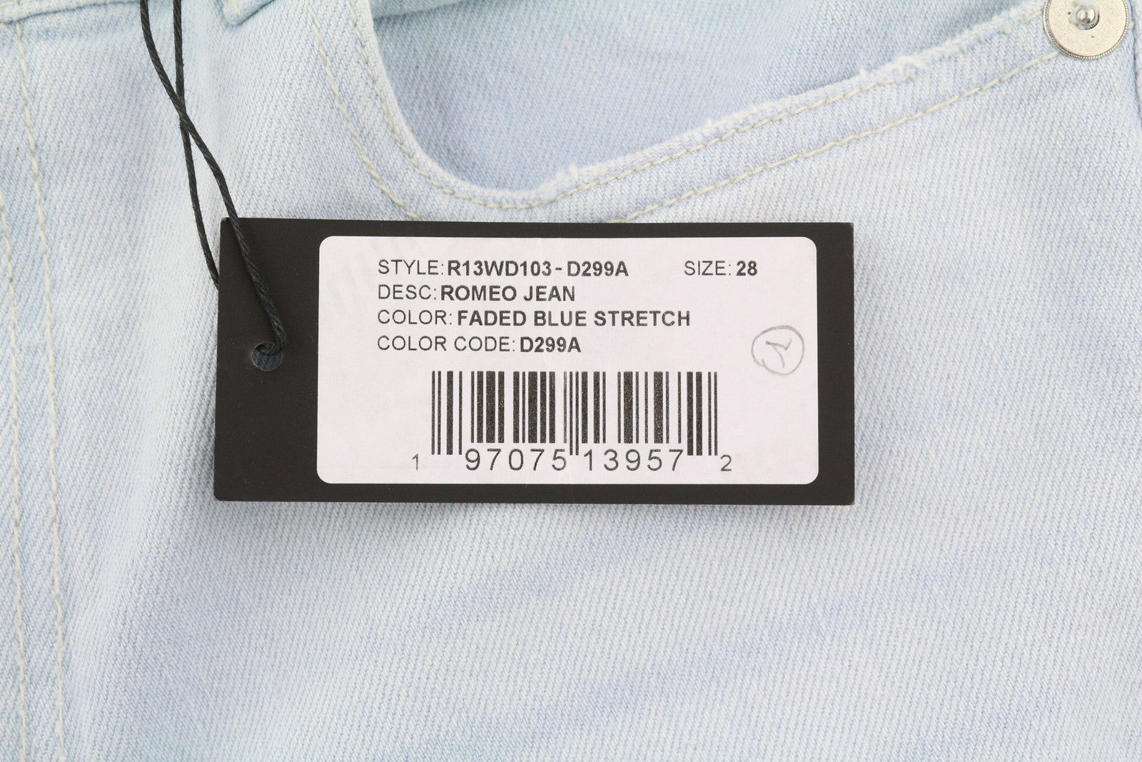 R13 Romeo Women Jeans 28 Faded Blue Stretch ankle Cropped Washed Zip Fly Denim