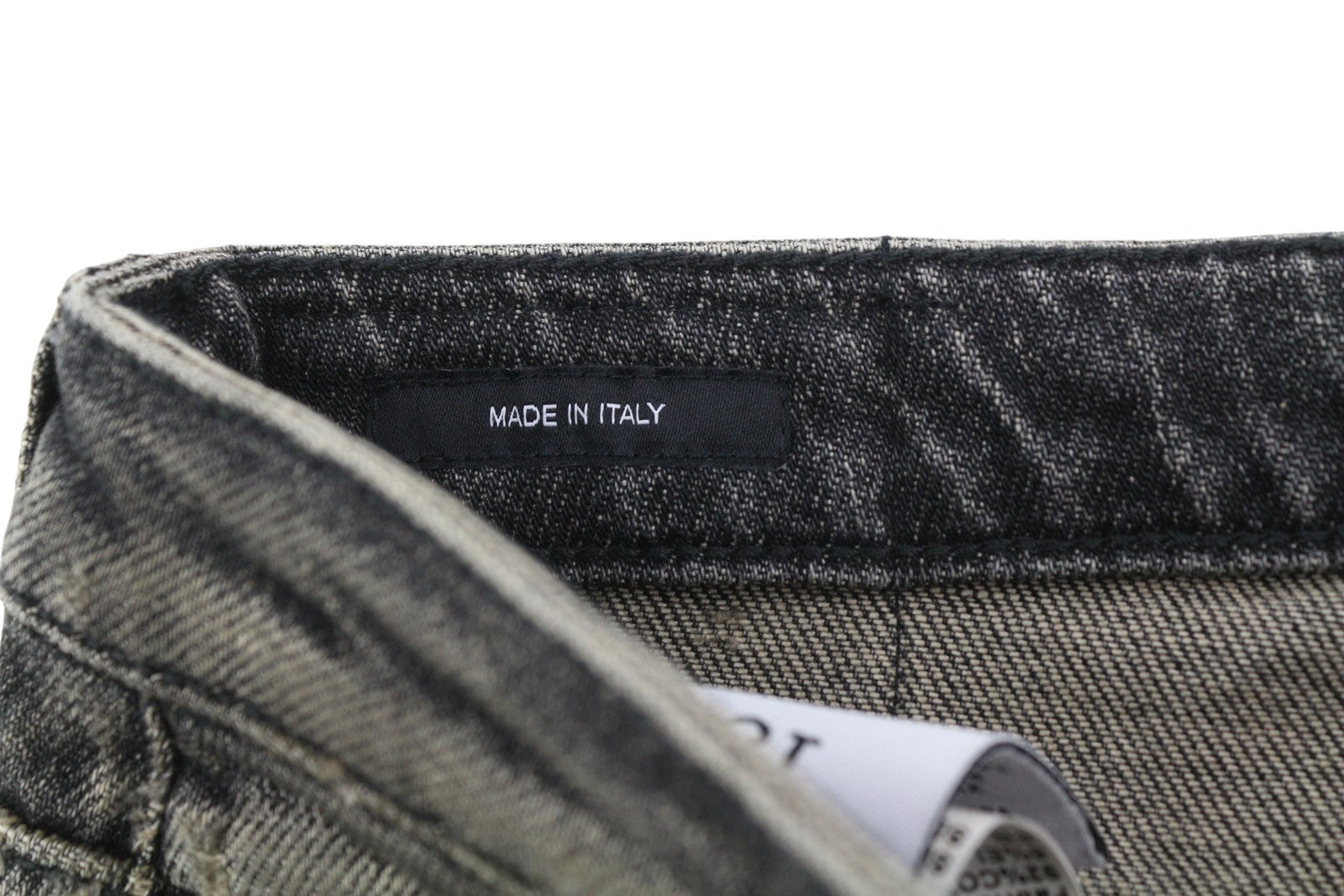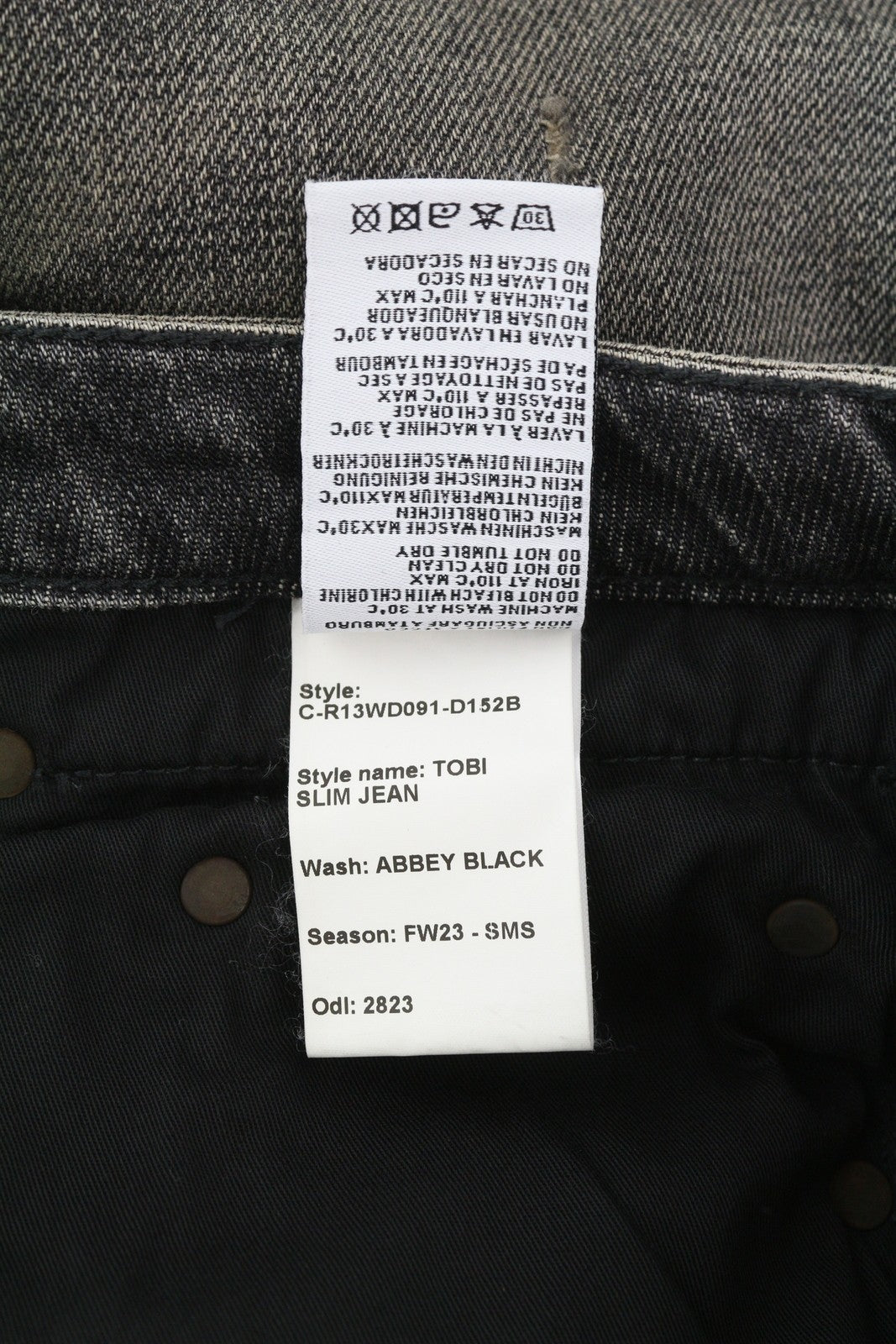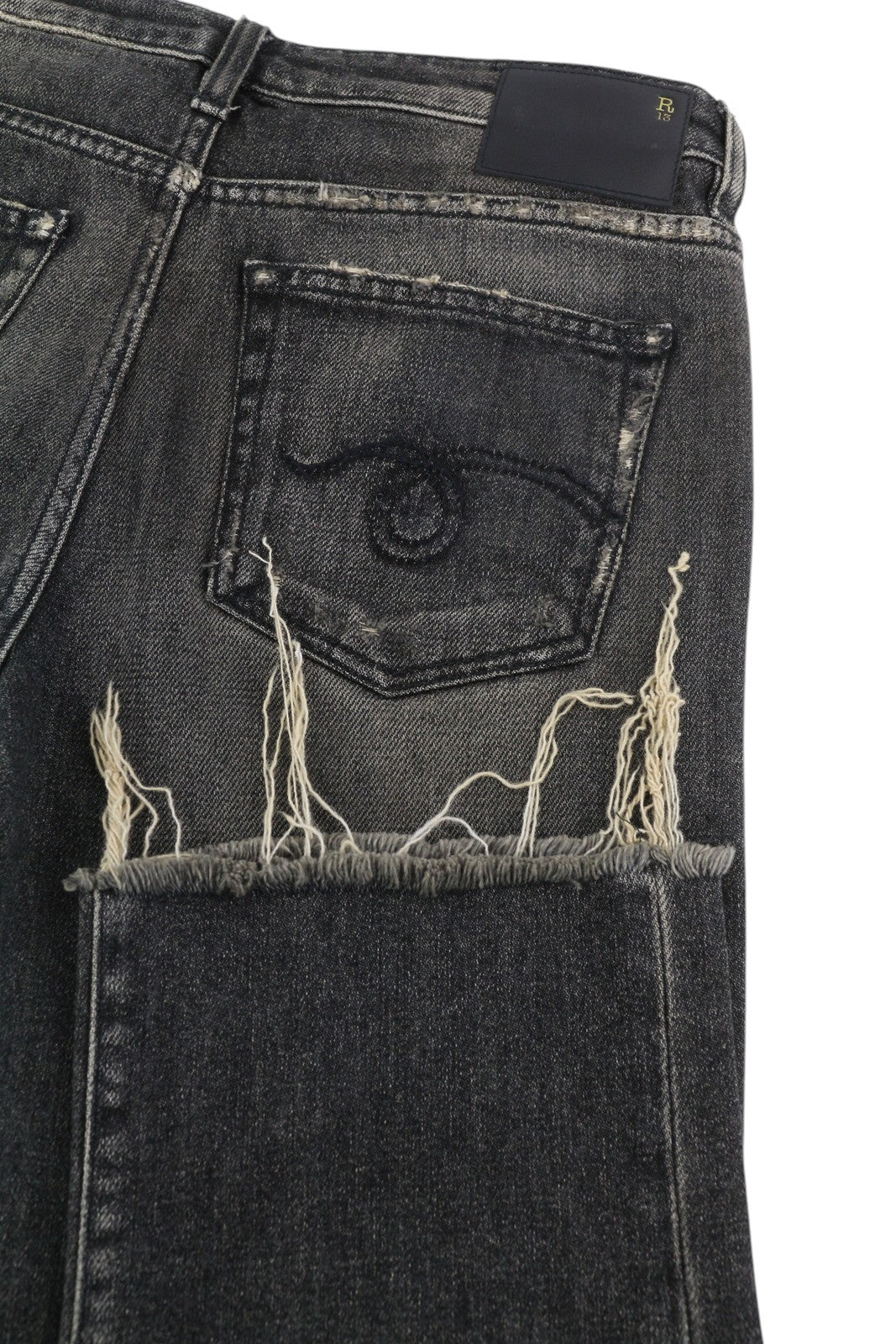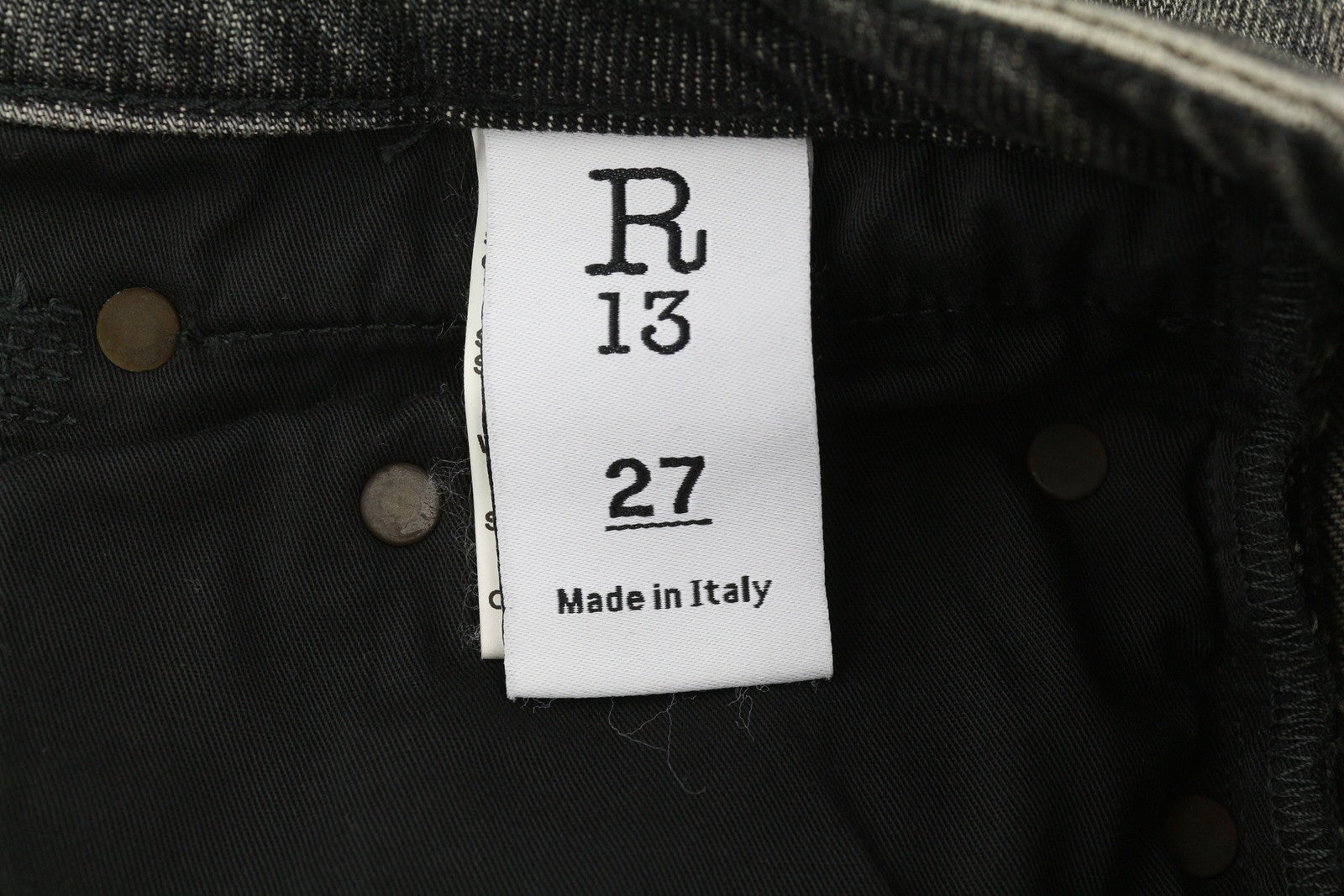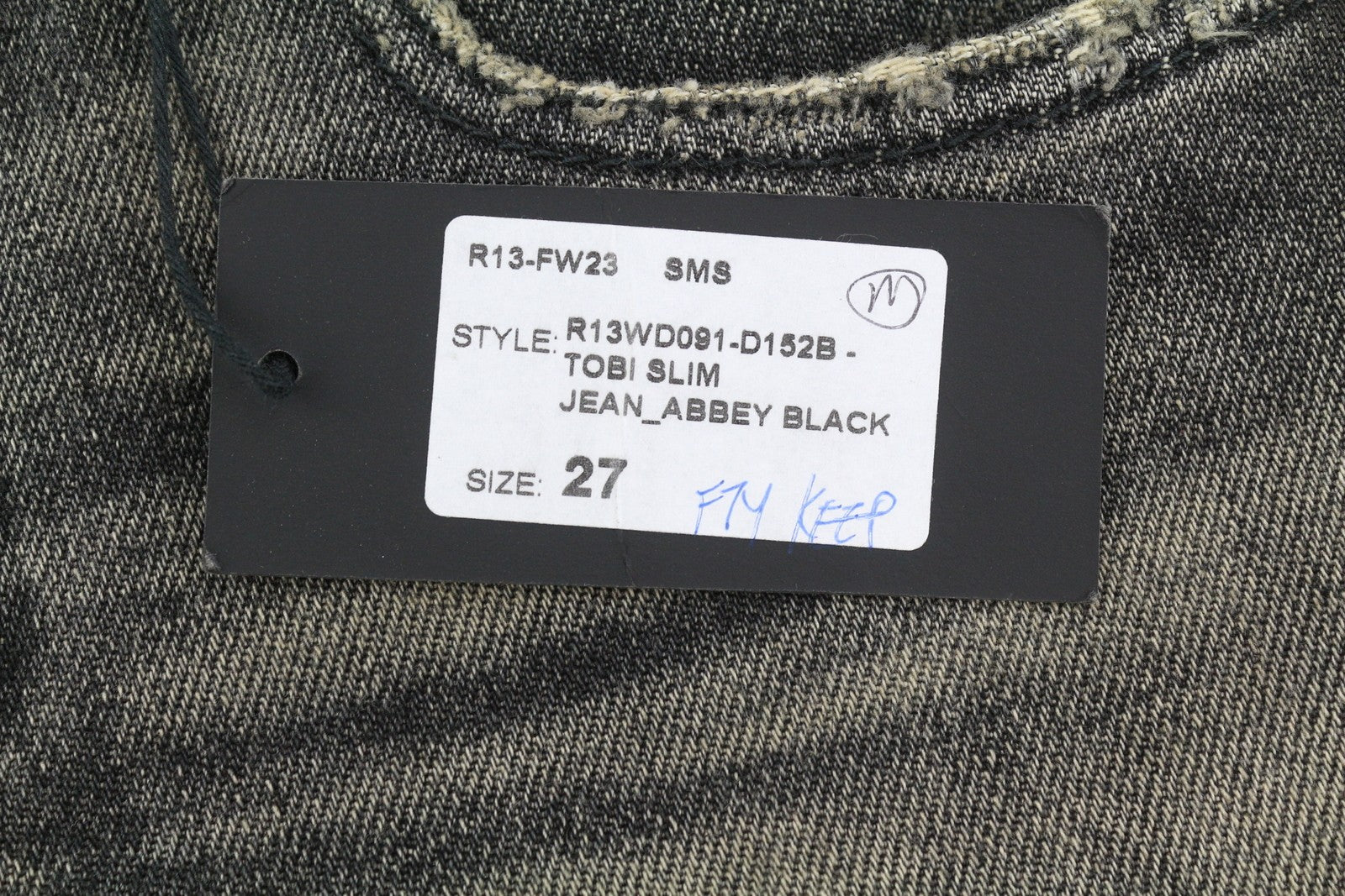 R13 Tobi Slim Women Jeans 27 Washed Distress Zip Straight Abbey Black RRP€645