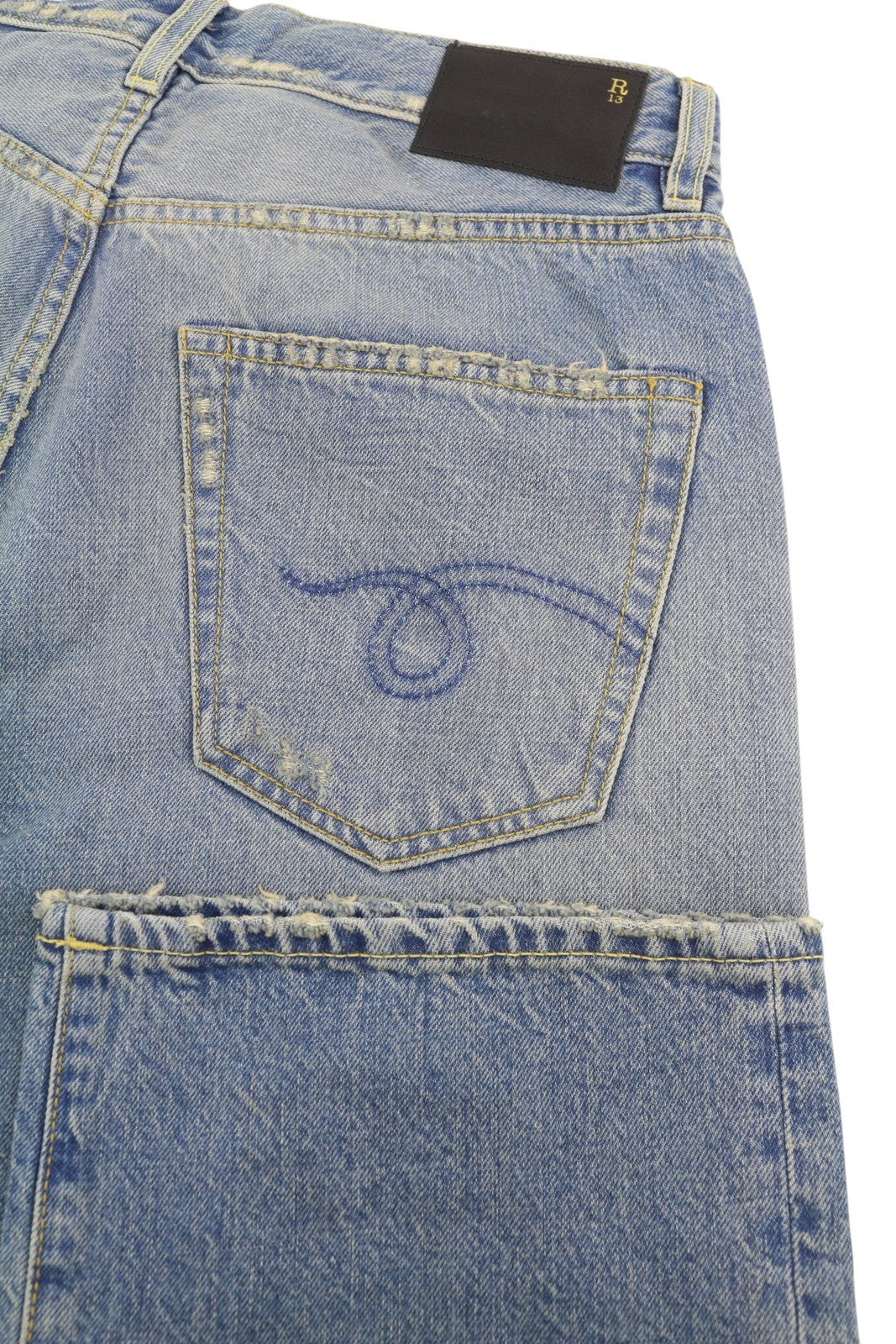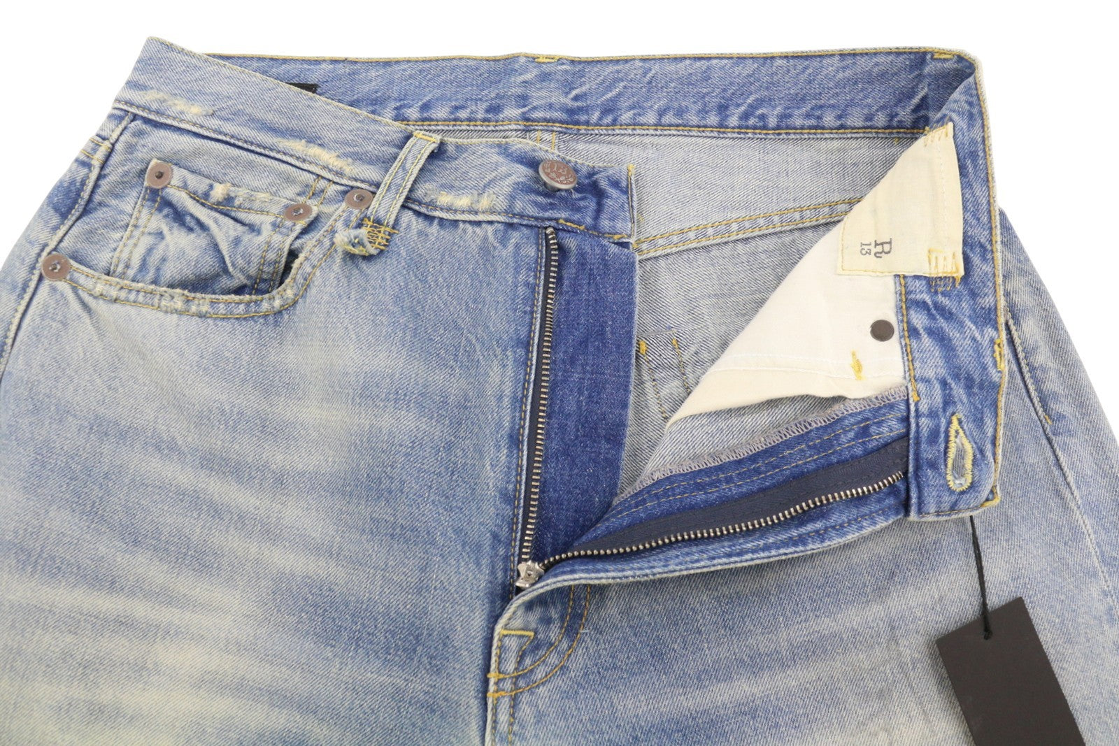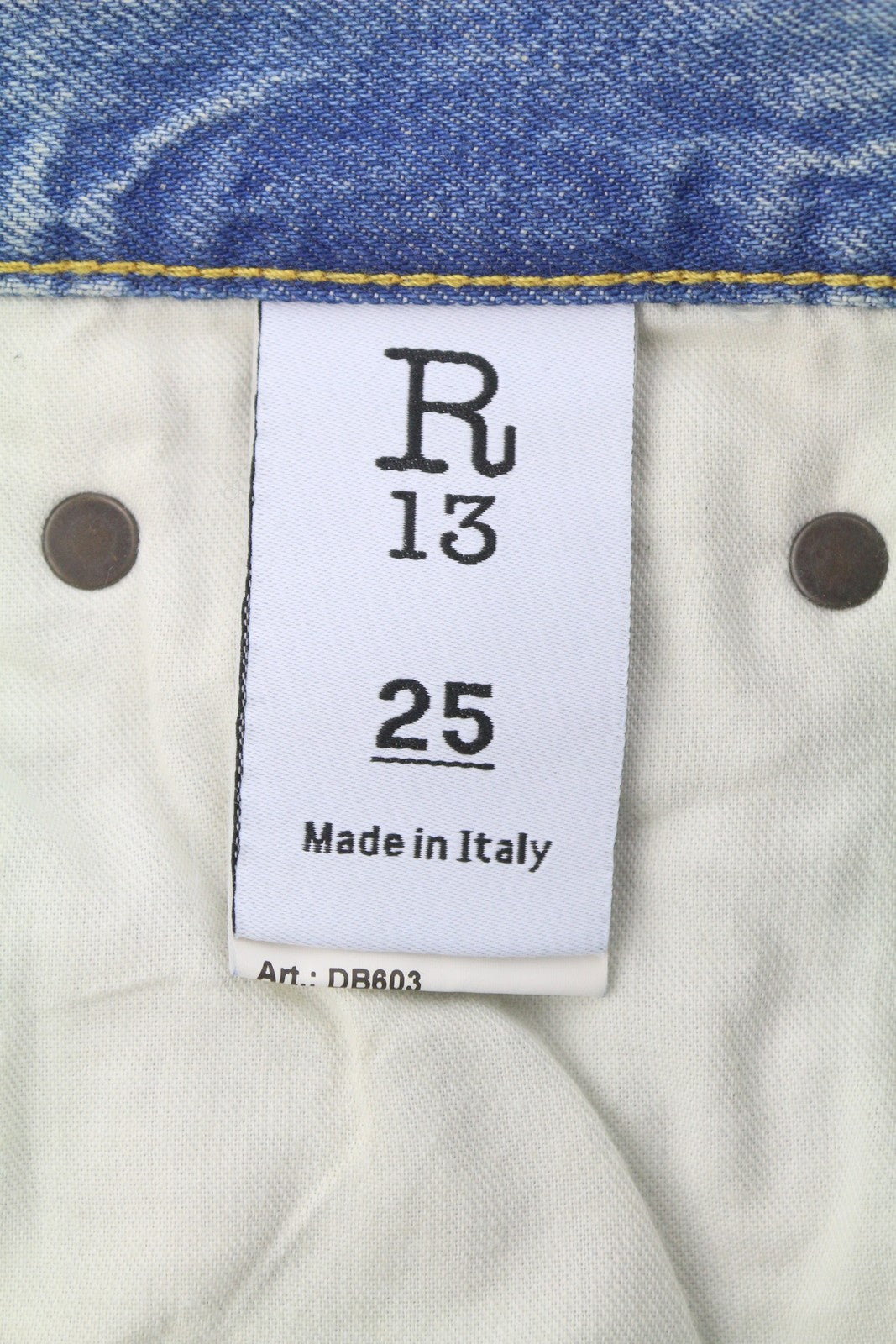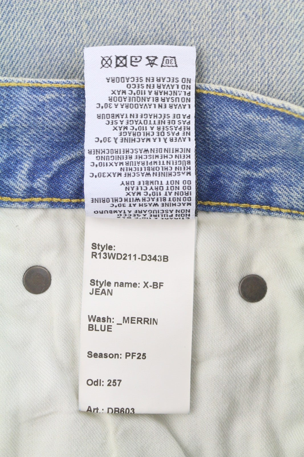 R13 X-BF moteriški džinsai 25 Merrin mėlyni ūsuoti skalbti žemo liemens džinsai PF25 RRP799