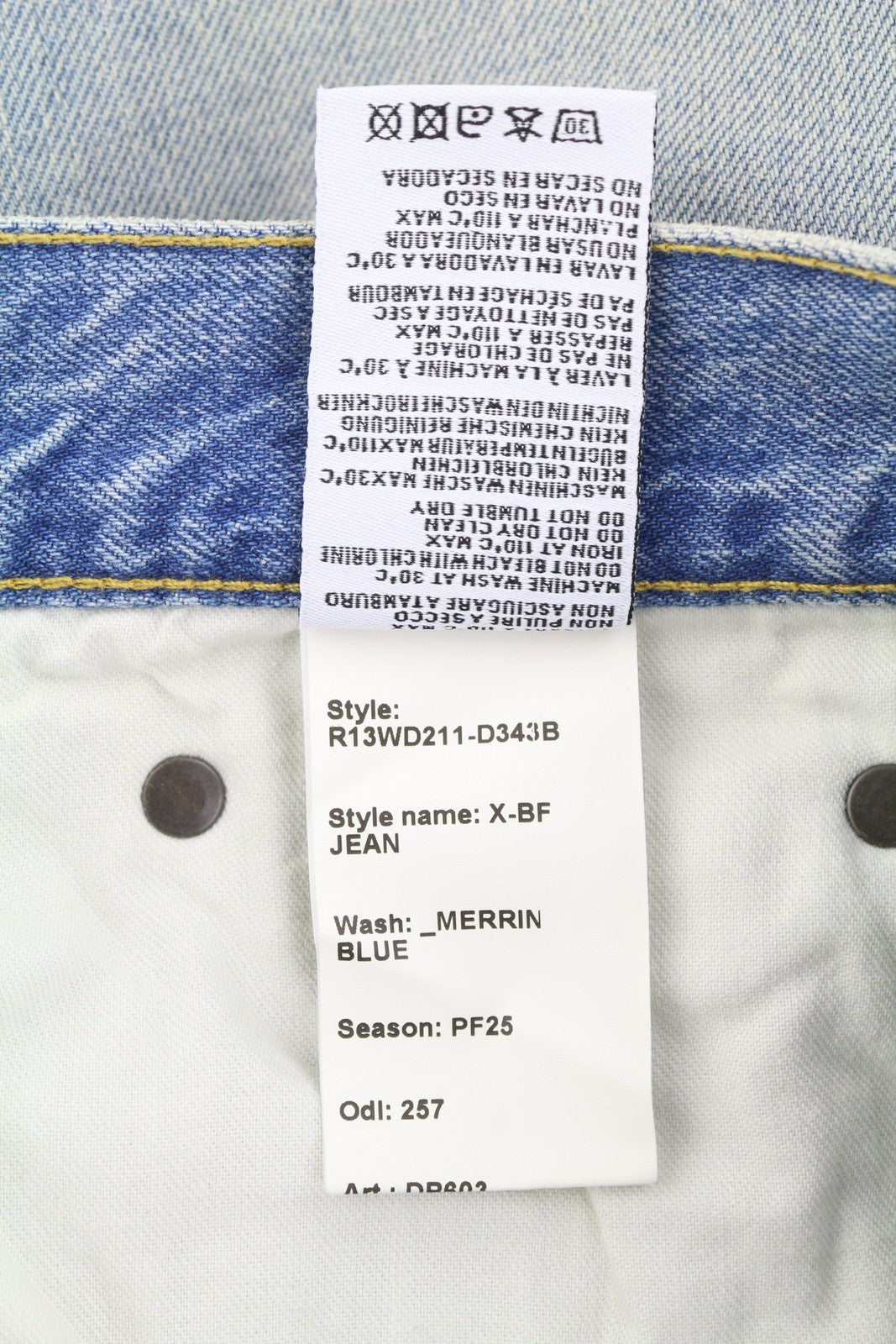 R13 X-BF moteriški džinsai 27 Merrin mėlyni ūsai su išblukusiu trumpintu užtrauktuku PF25