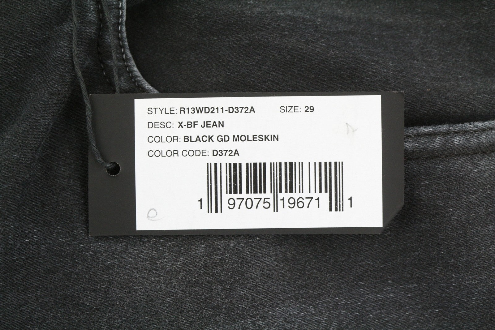R13 X-BF moteriški džinsai, 29, juodi, dažyti moleskino imitacijos, išblukinti, trumpinti iki kulkšnies, FW25